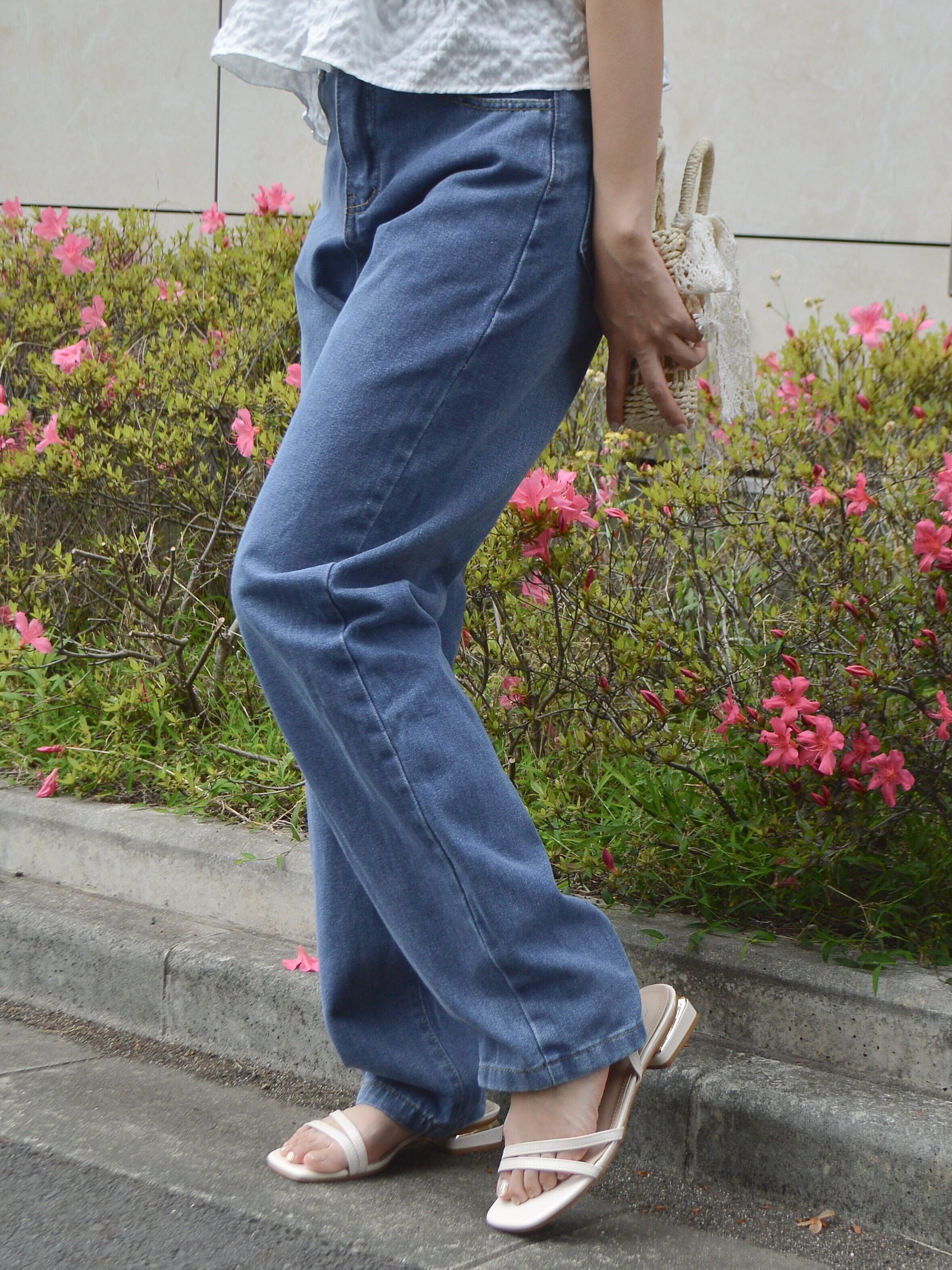 ・ハイウエストなので、ショート丈のトップスとも合わせやすい!