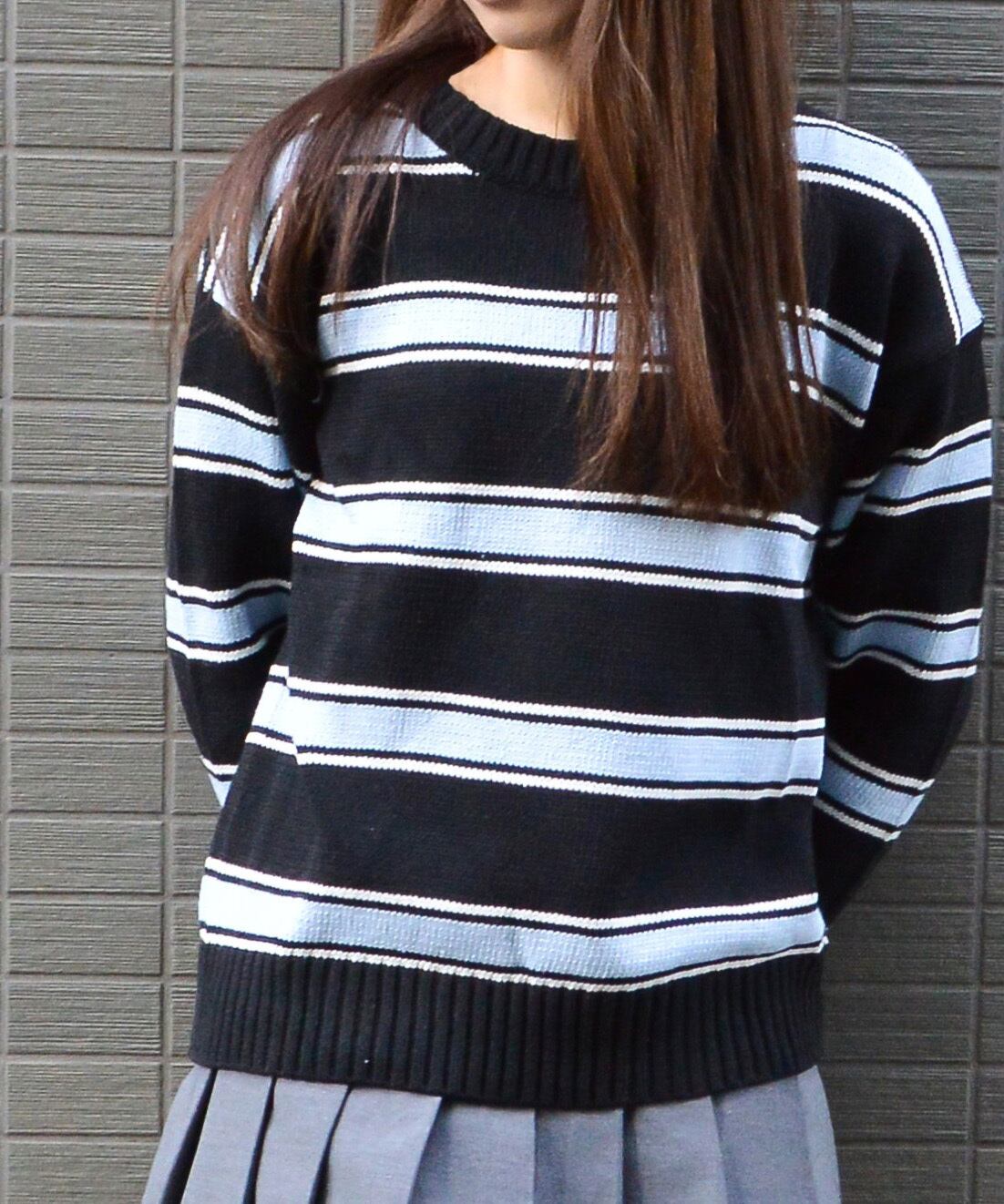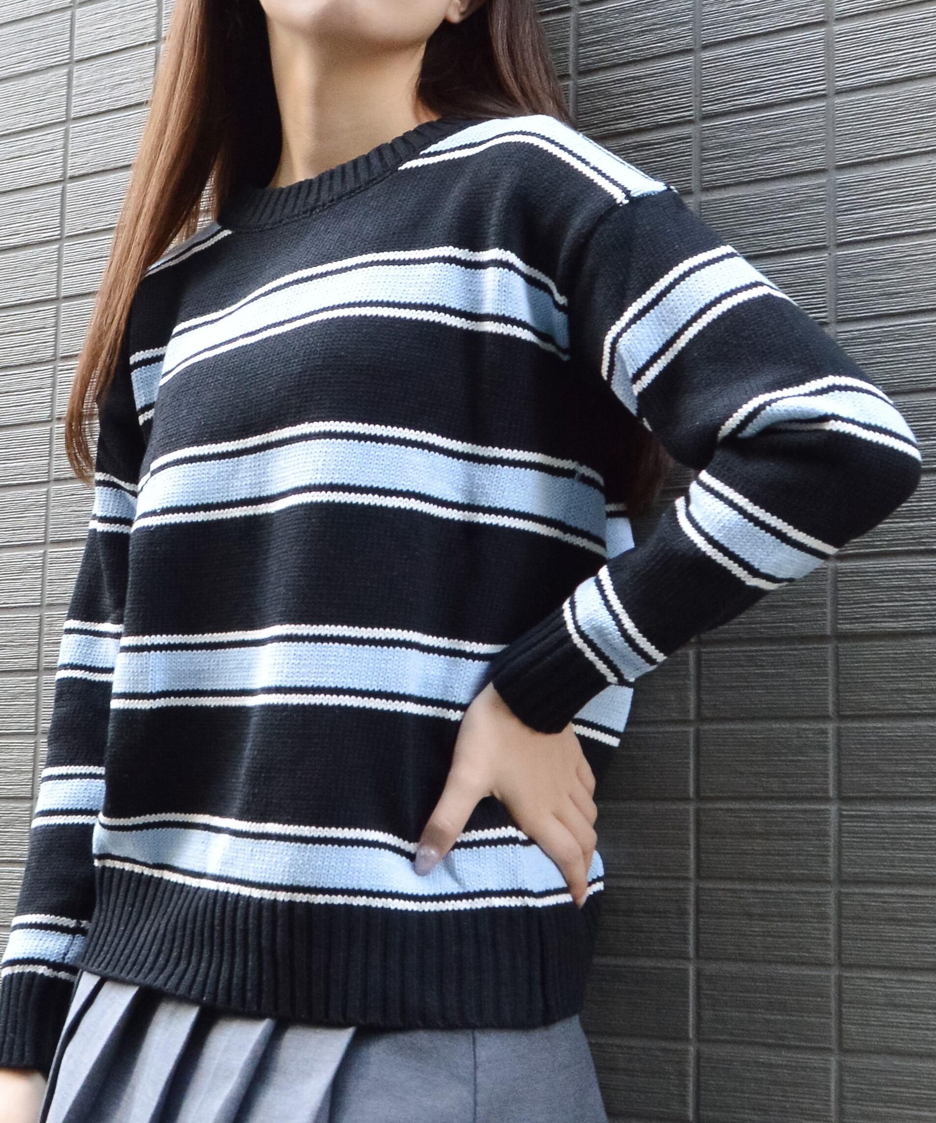【ブルーベースな配色が可愛い、ボーダー柄ニット!】