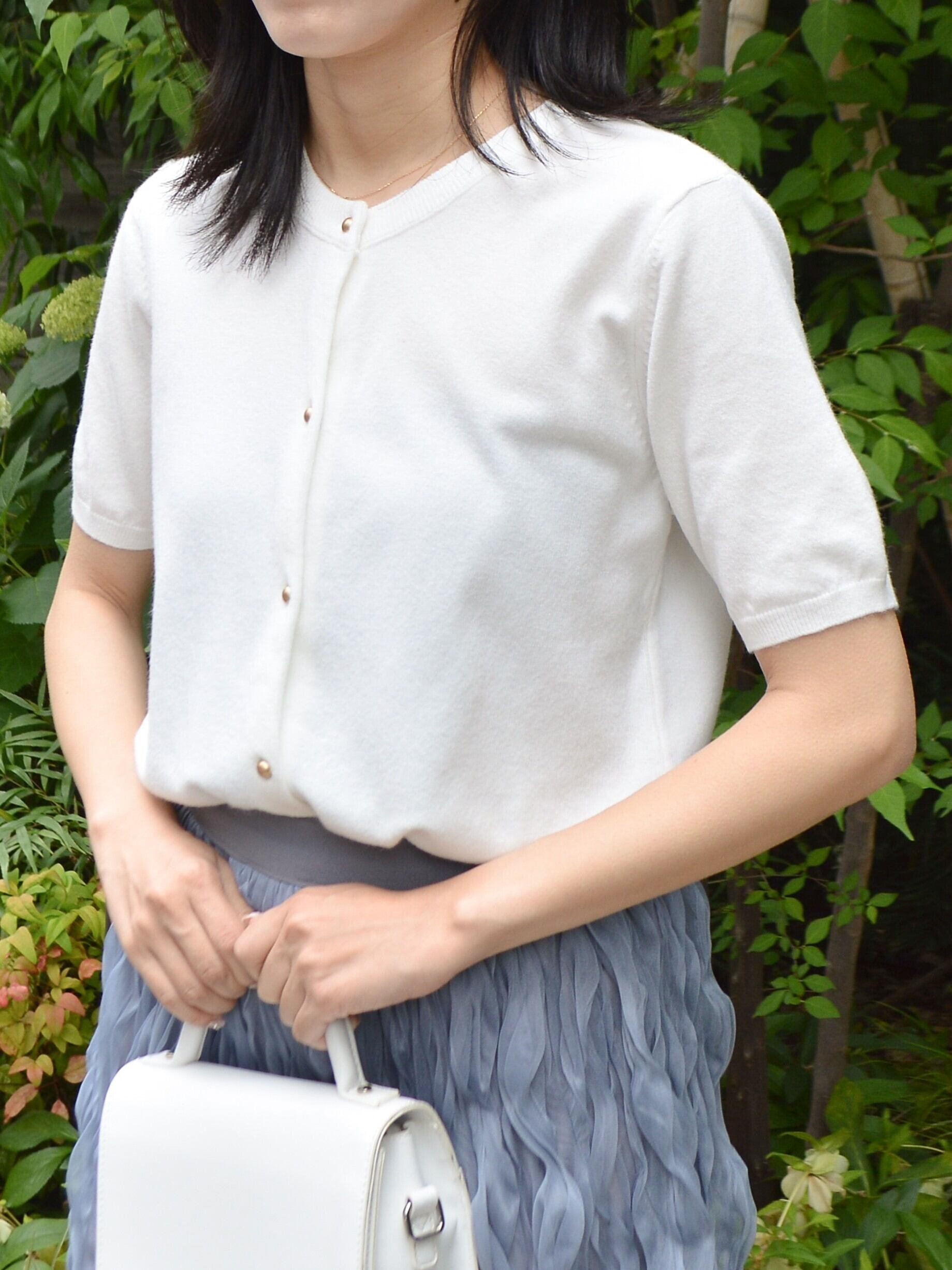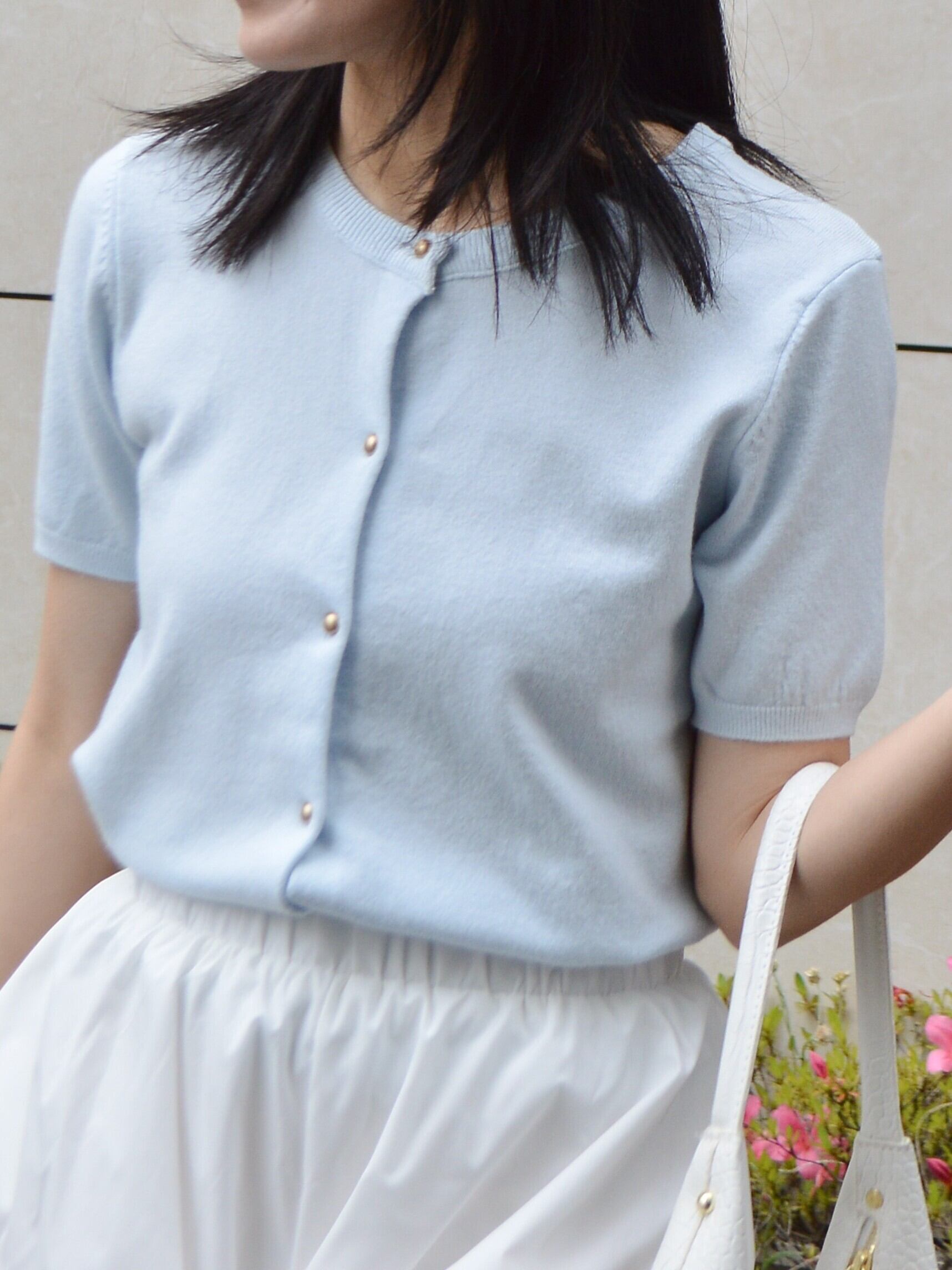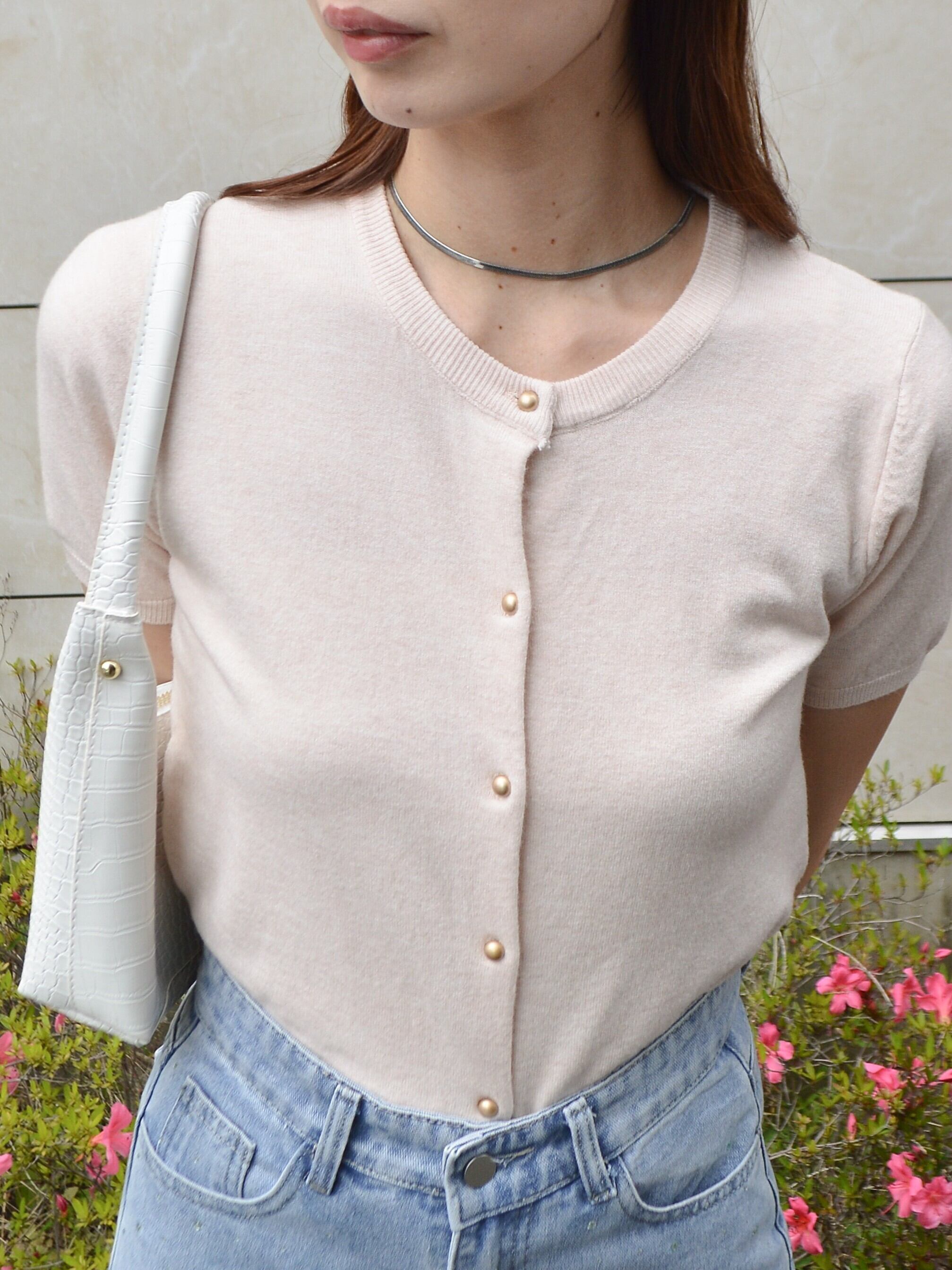 ・小さなゴールドボタンで、シンプルかつきれいめなデザイン