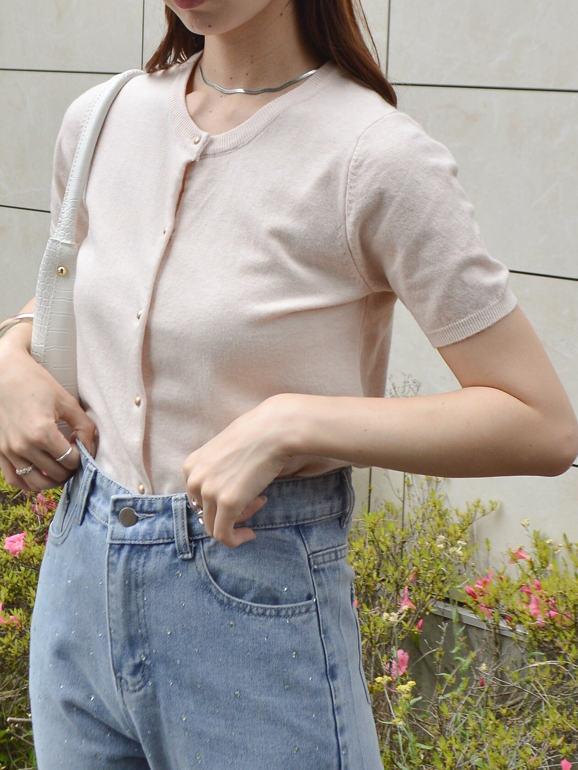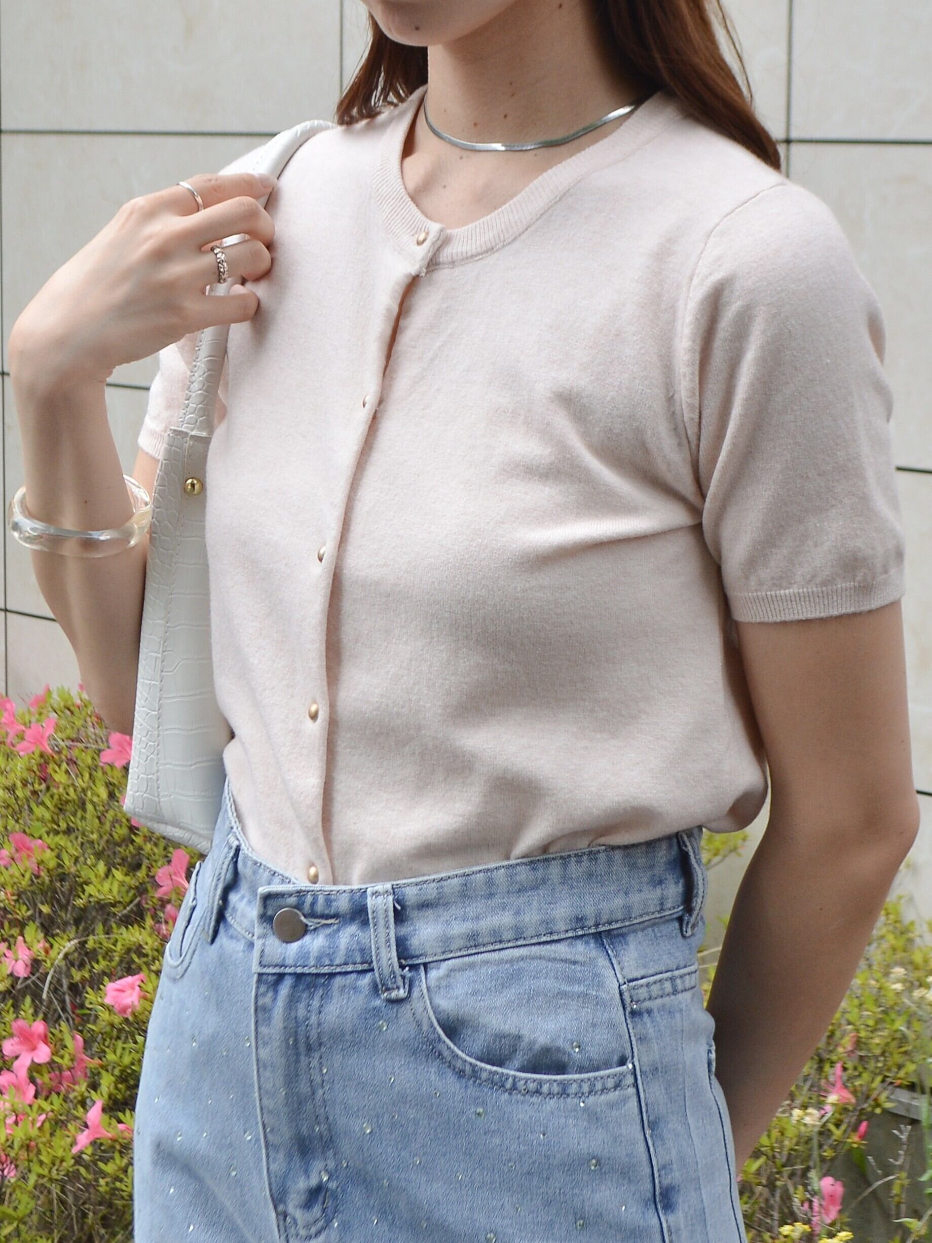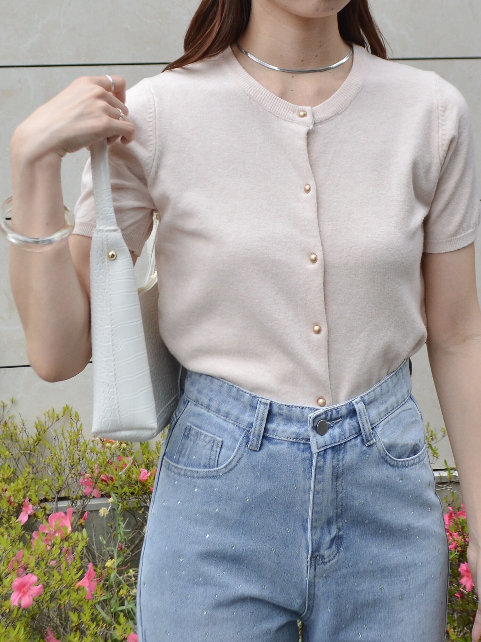・小さなゴールドボタンで、シンプルかつきれいめなデザイン
