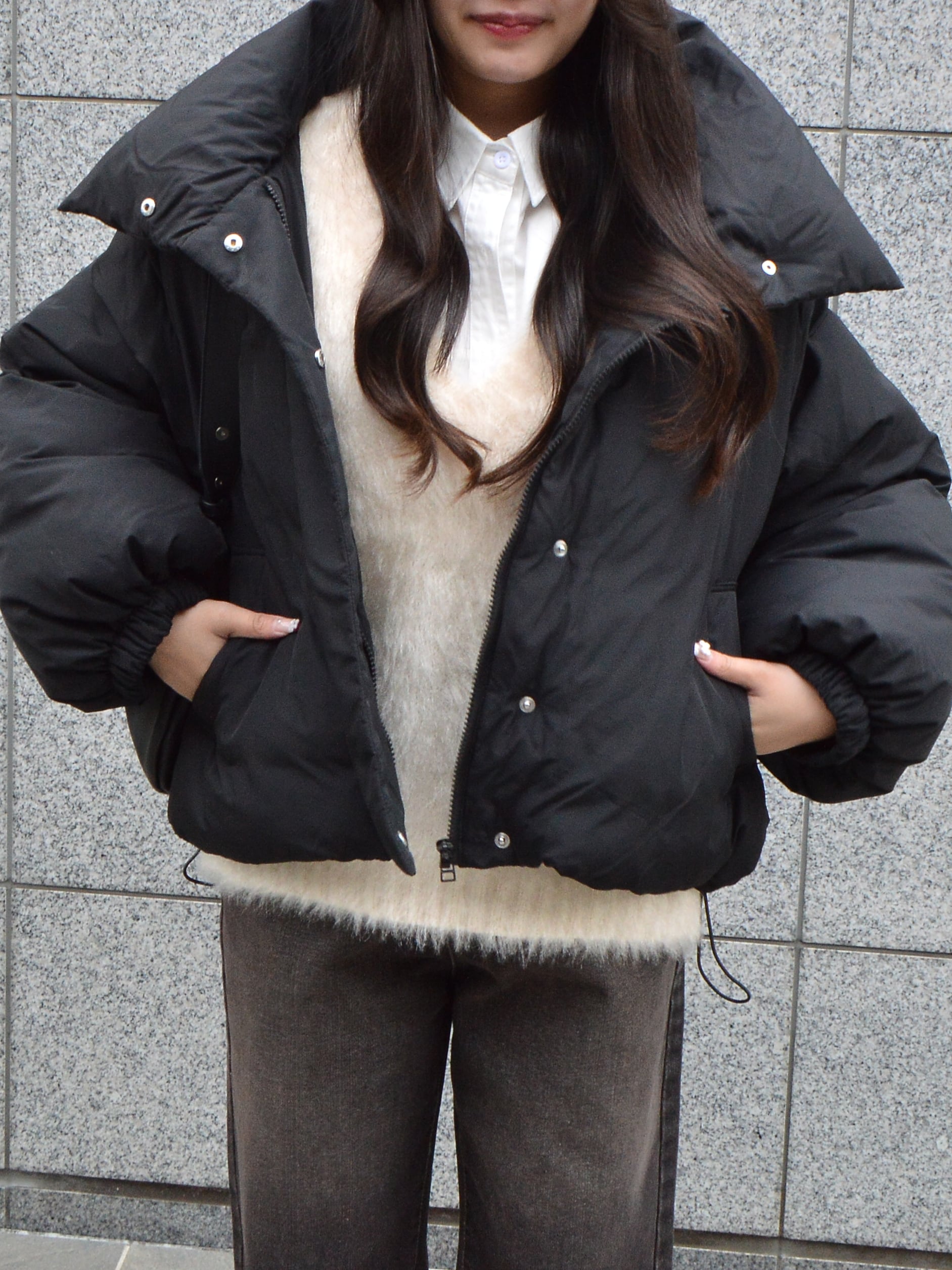 ・首元を包み込むスタンドカラー仕様で、小顔効果&防寒性◎