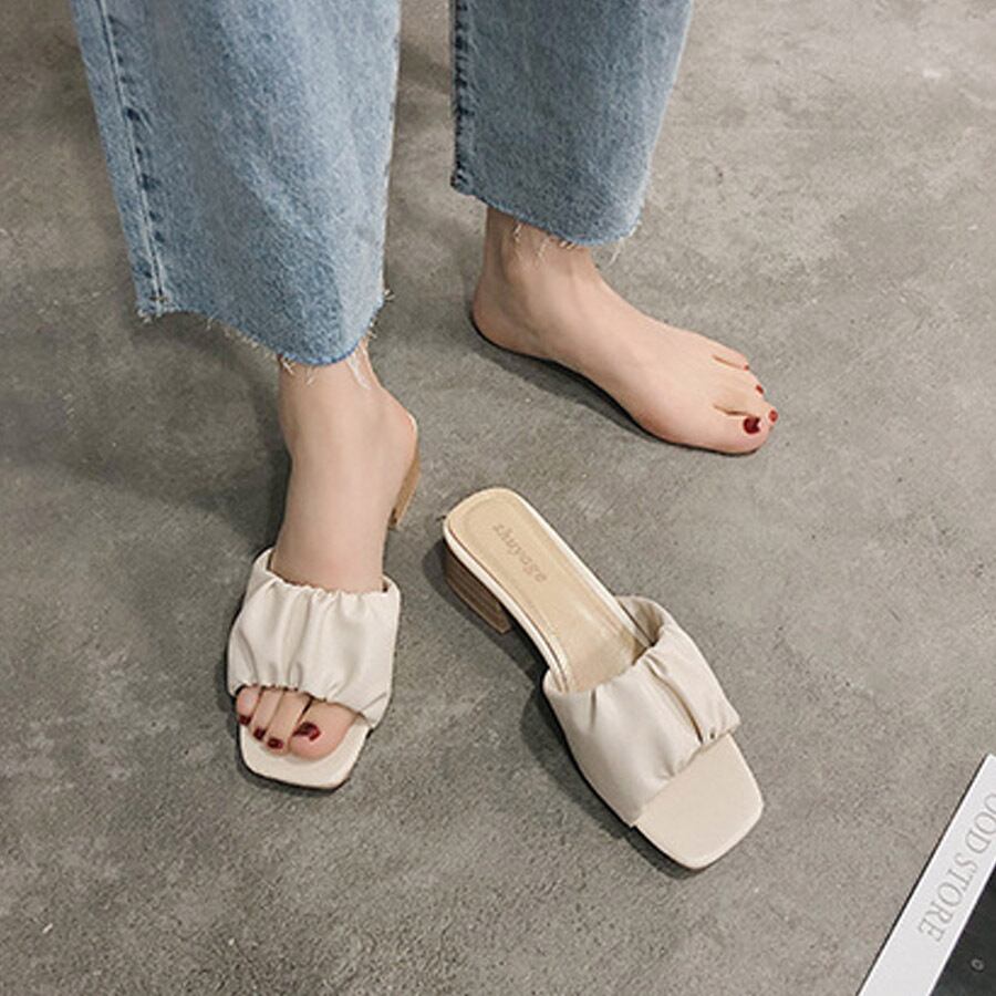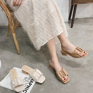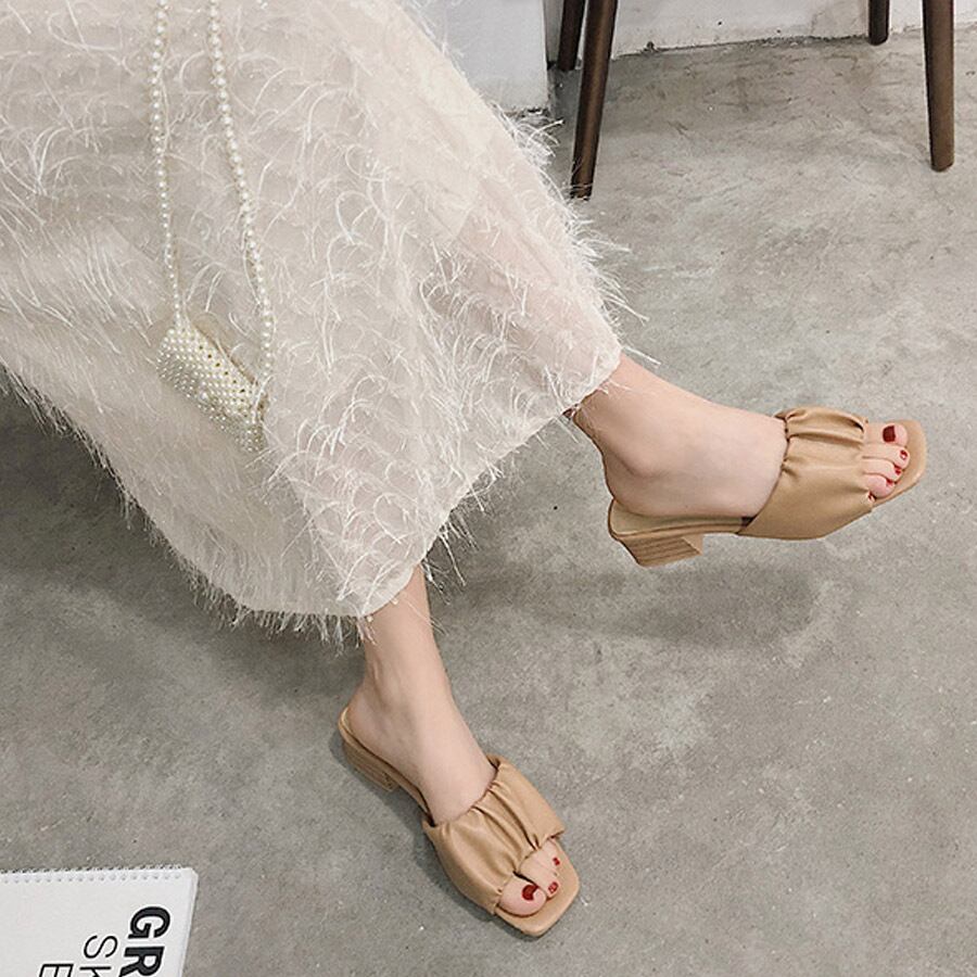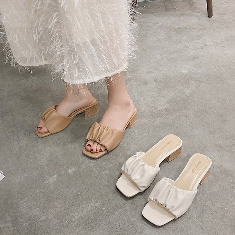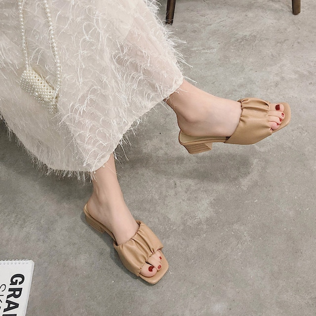 今季トレンドのギャザーチャンキーヒールサンダル★ 程よいヒールの高さとスクエアトゥの上品なディティールがポイント。 ブラウン、アイボリーの2色展開です。