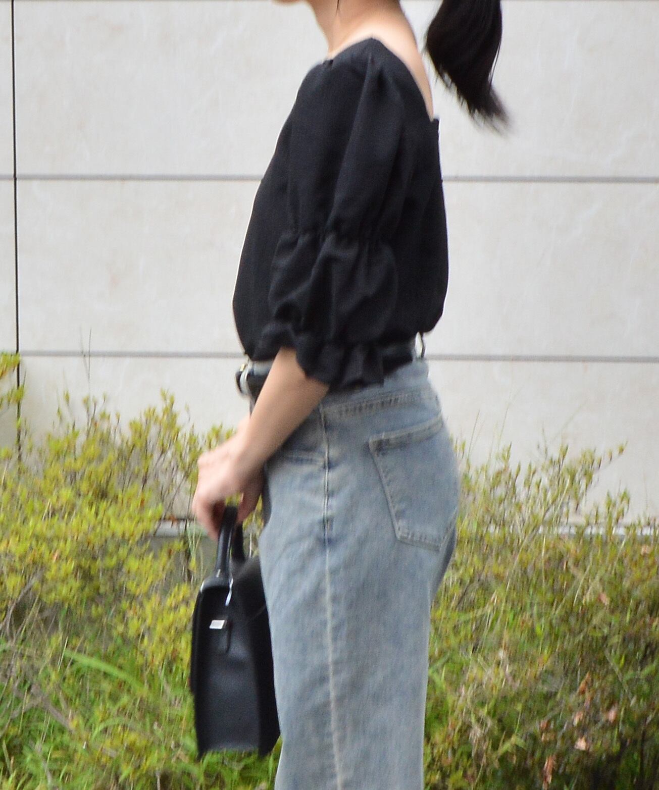 パンツスタイルでもフェミニンな大人らしさを演出する一枚です。