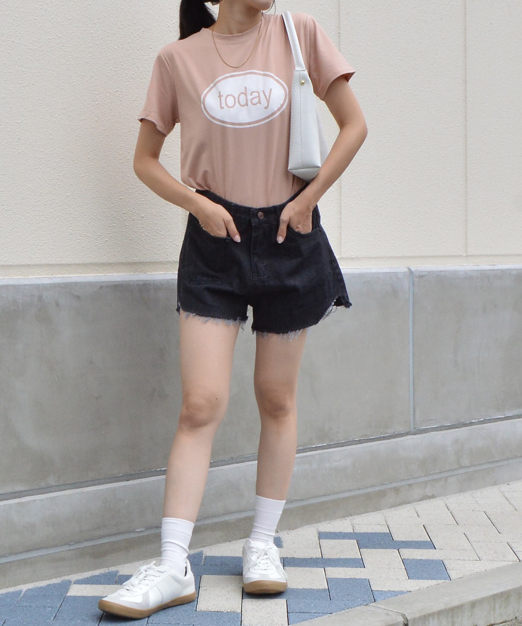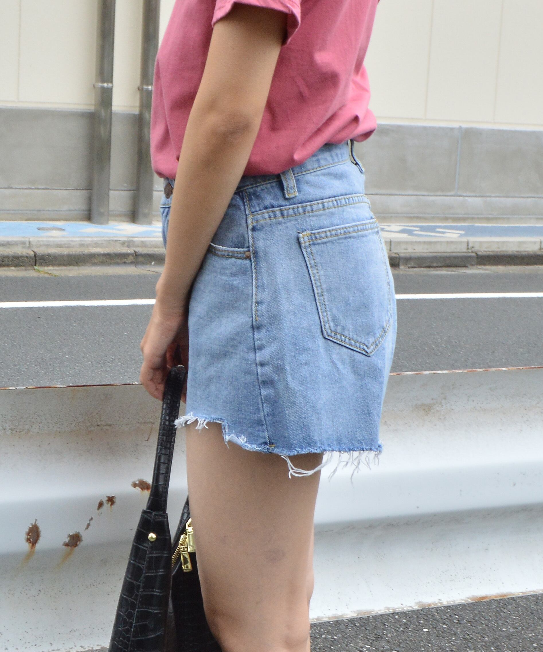 カットオフされたデザインと程よい色味でこなれた印象に。