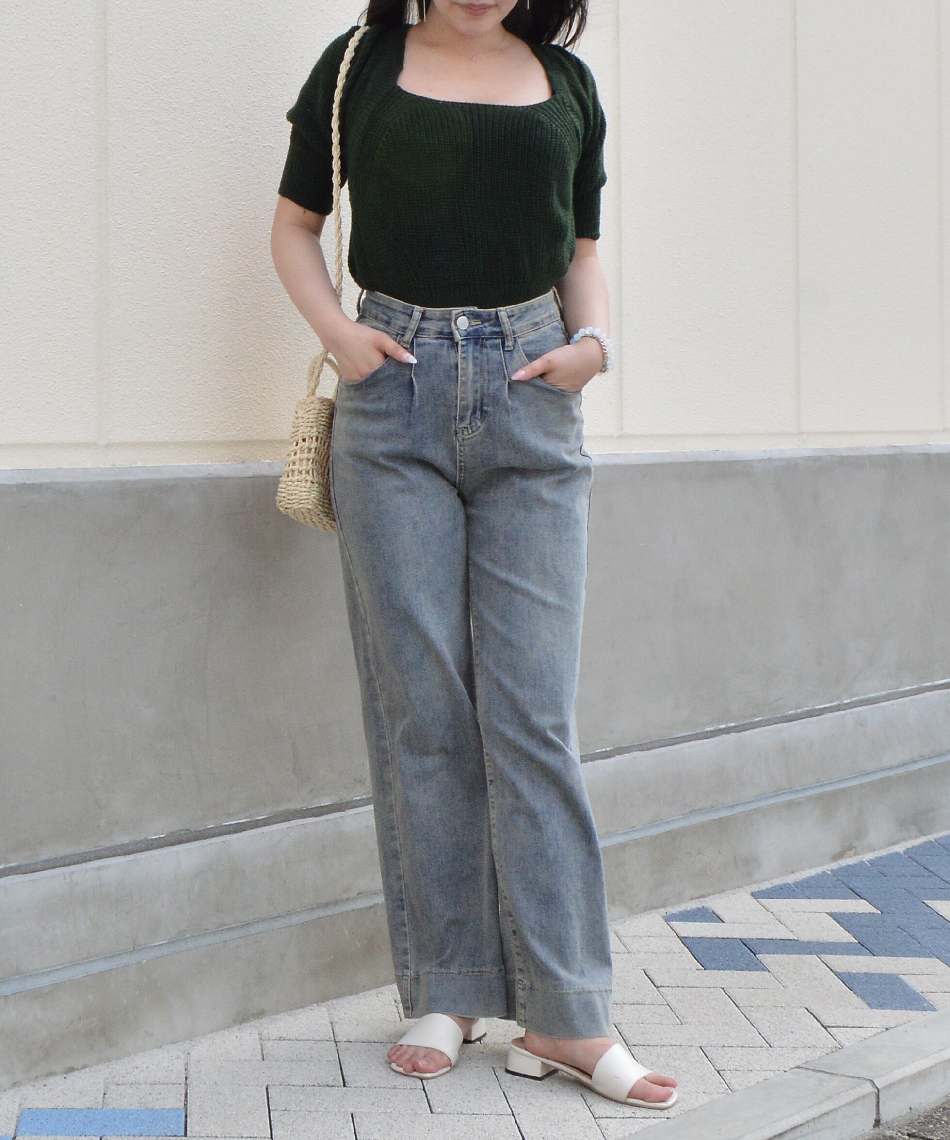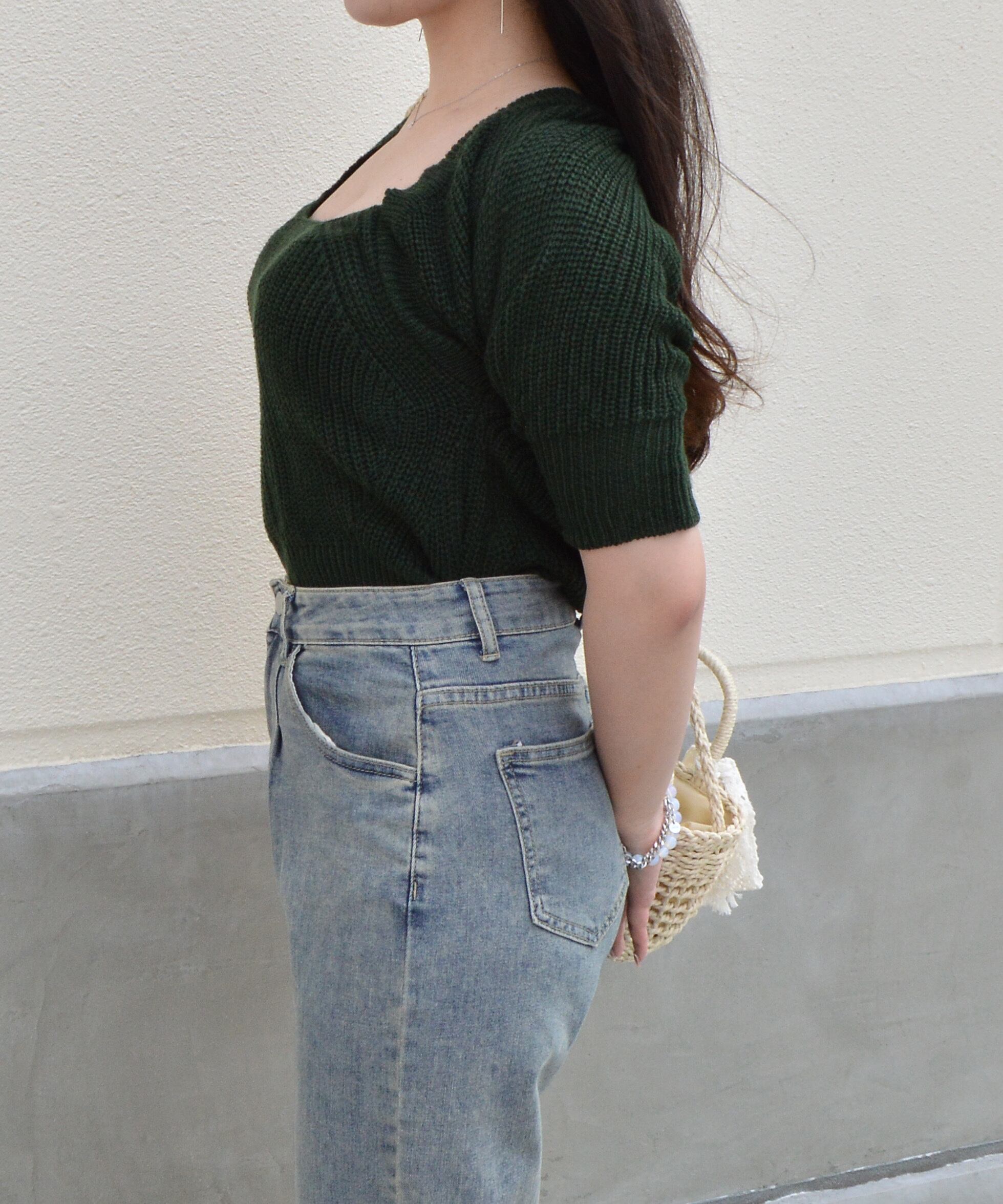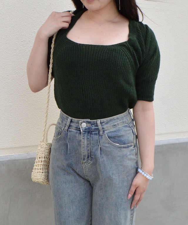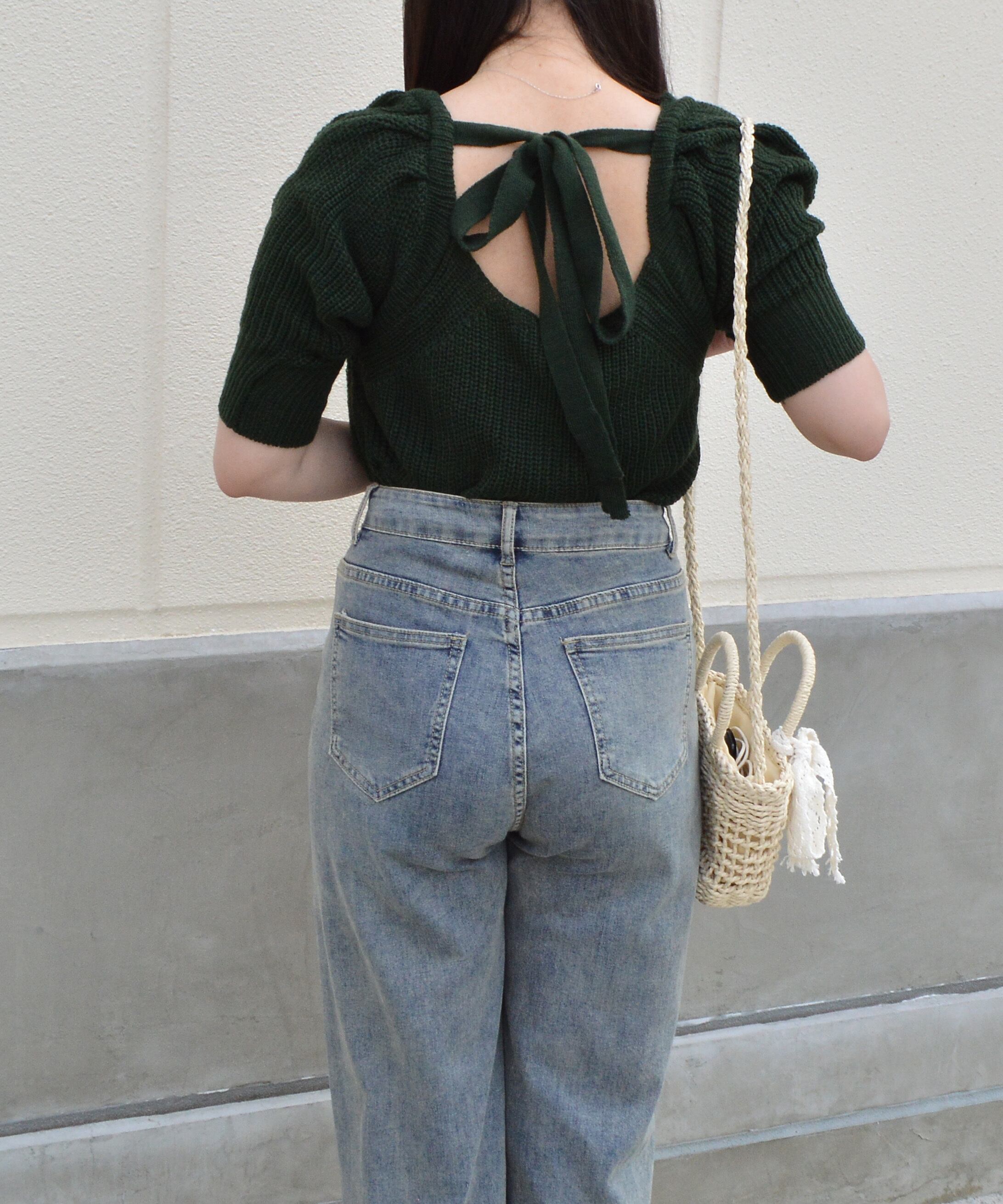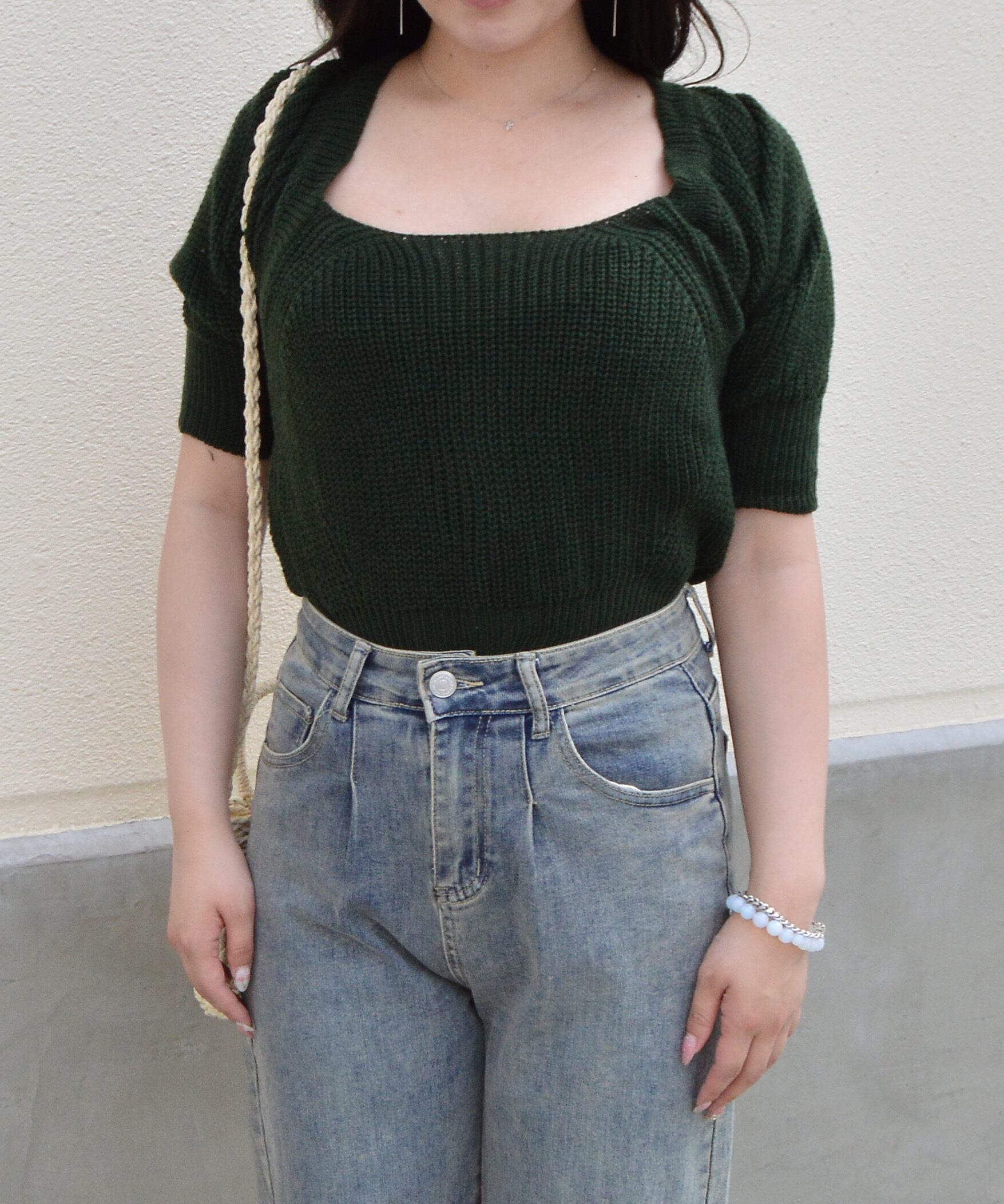 身頃は着やすい片畦編み。ぽわんと可愛いパフ袖が女性らしい。