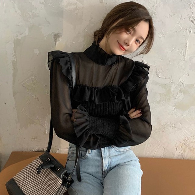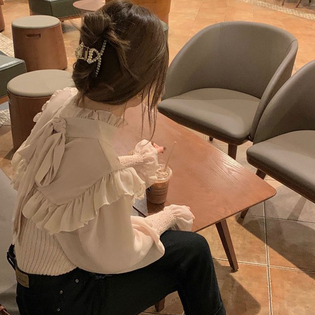 バックリボンがかわいいシフォンドッキングブラウス♪