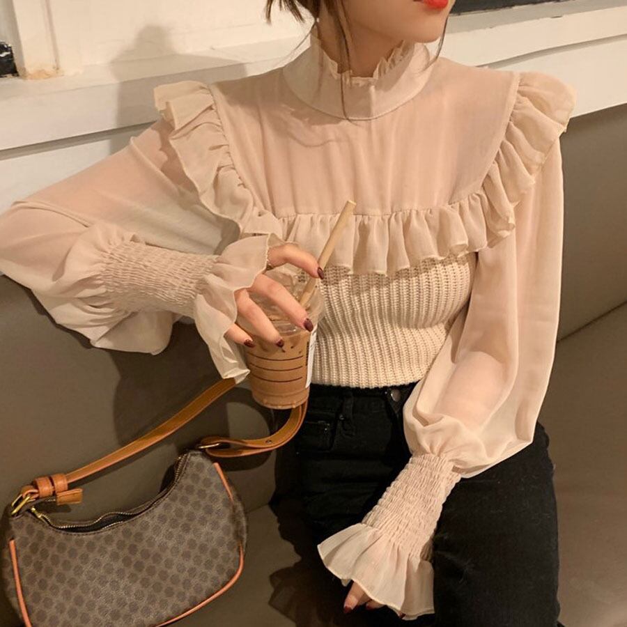 バックリボンシフォンドッキングニット &soiree