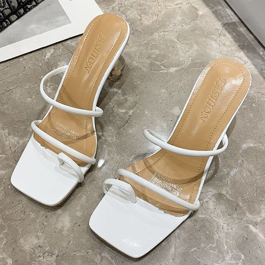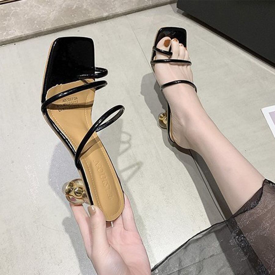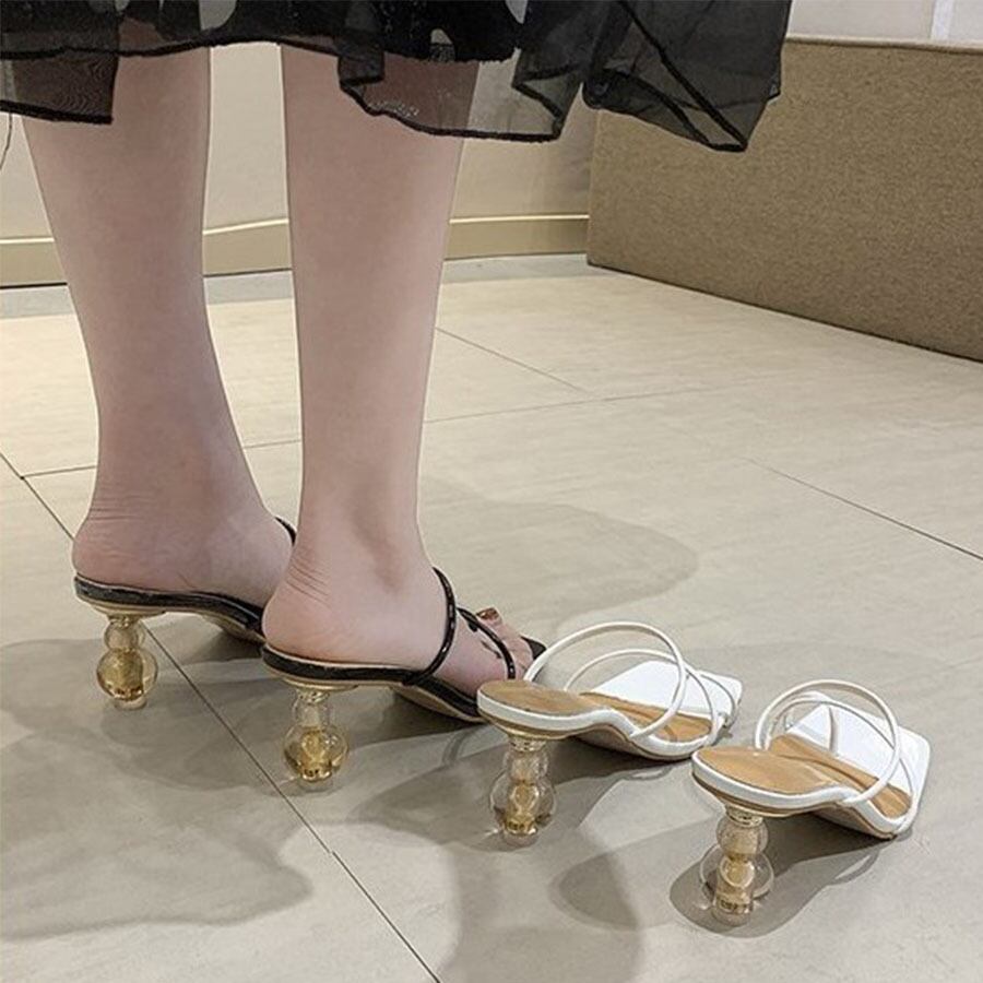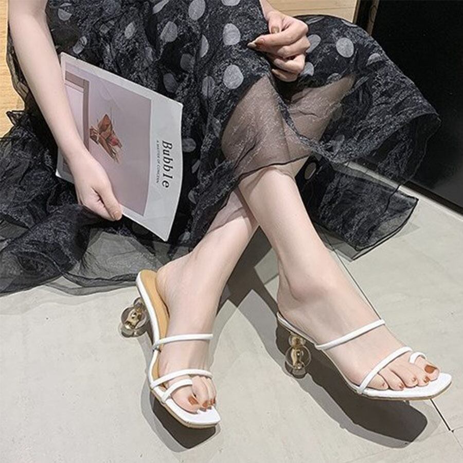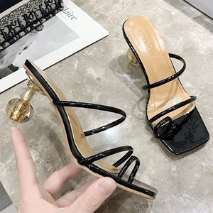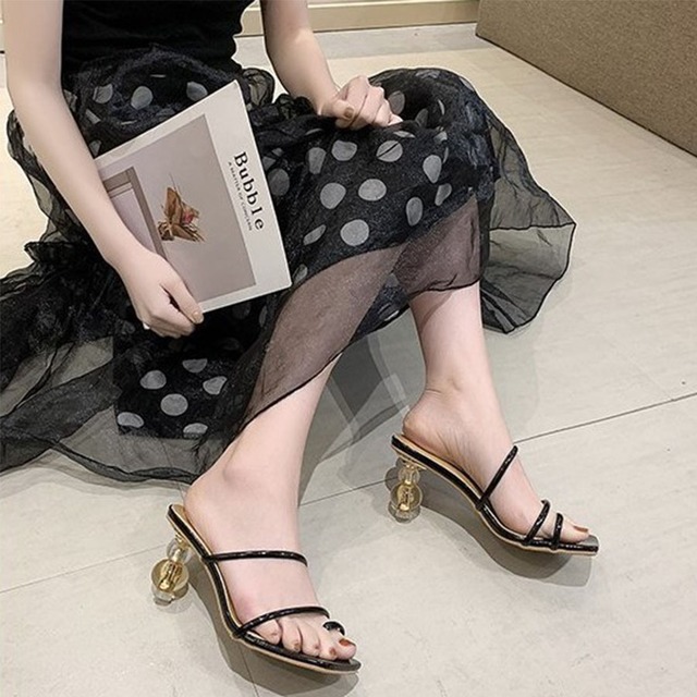 ヒール部分は、丸いガラスのようなディテールのクリアヒール