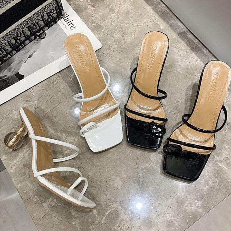 フェミニンを際立たせる繊細なストラップとハンサムさをプラスしてくれるスクエアトゥ使用。