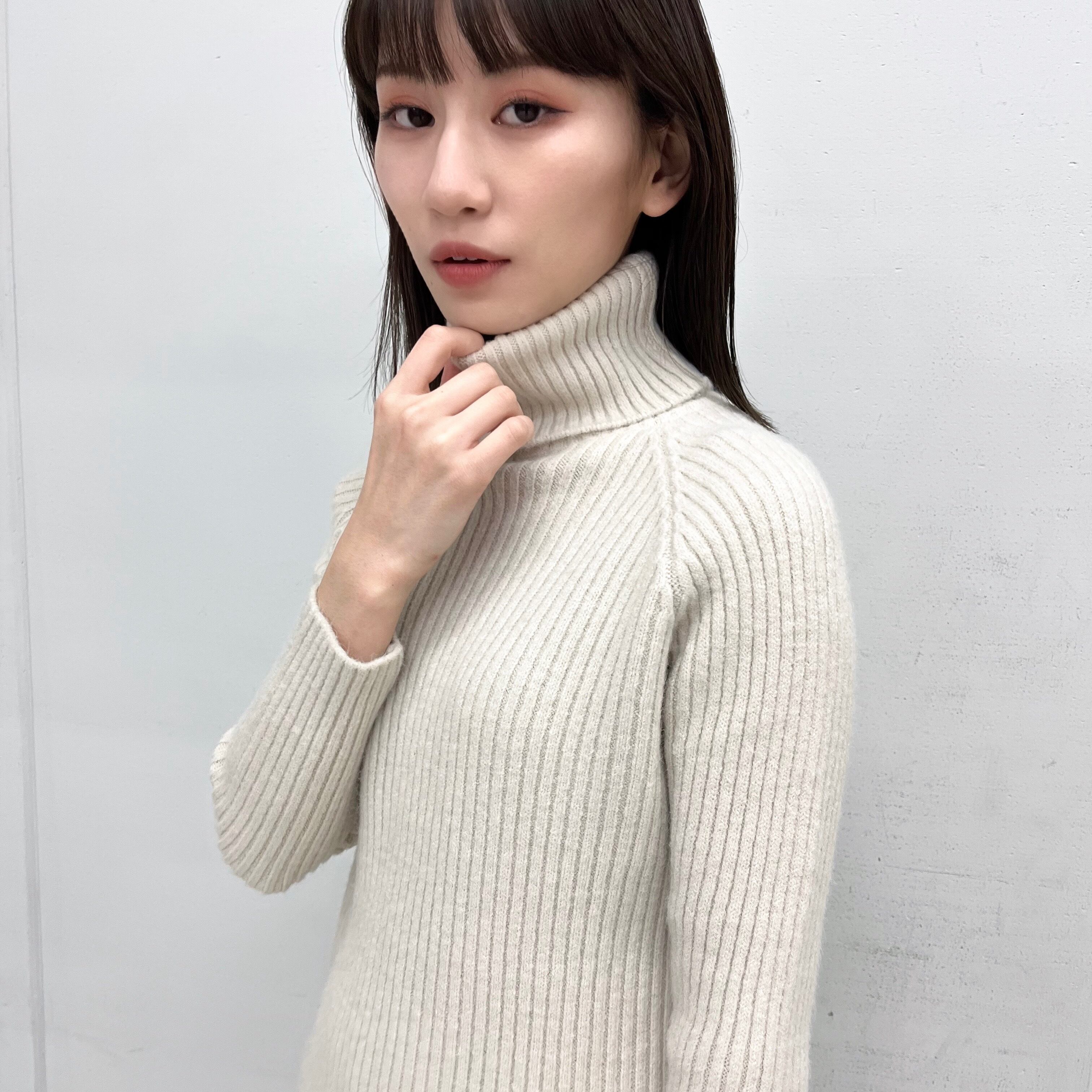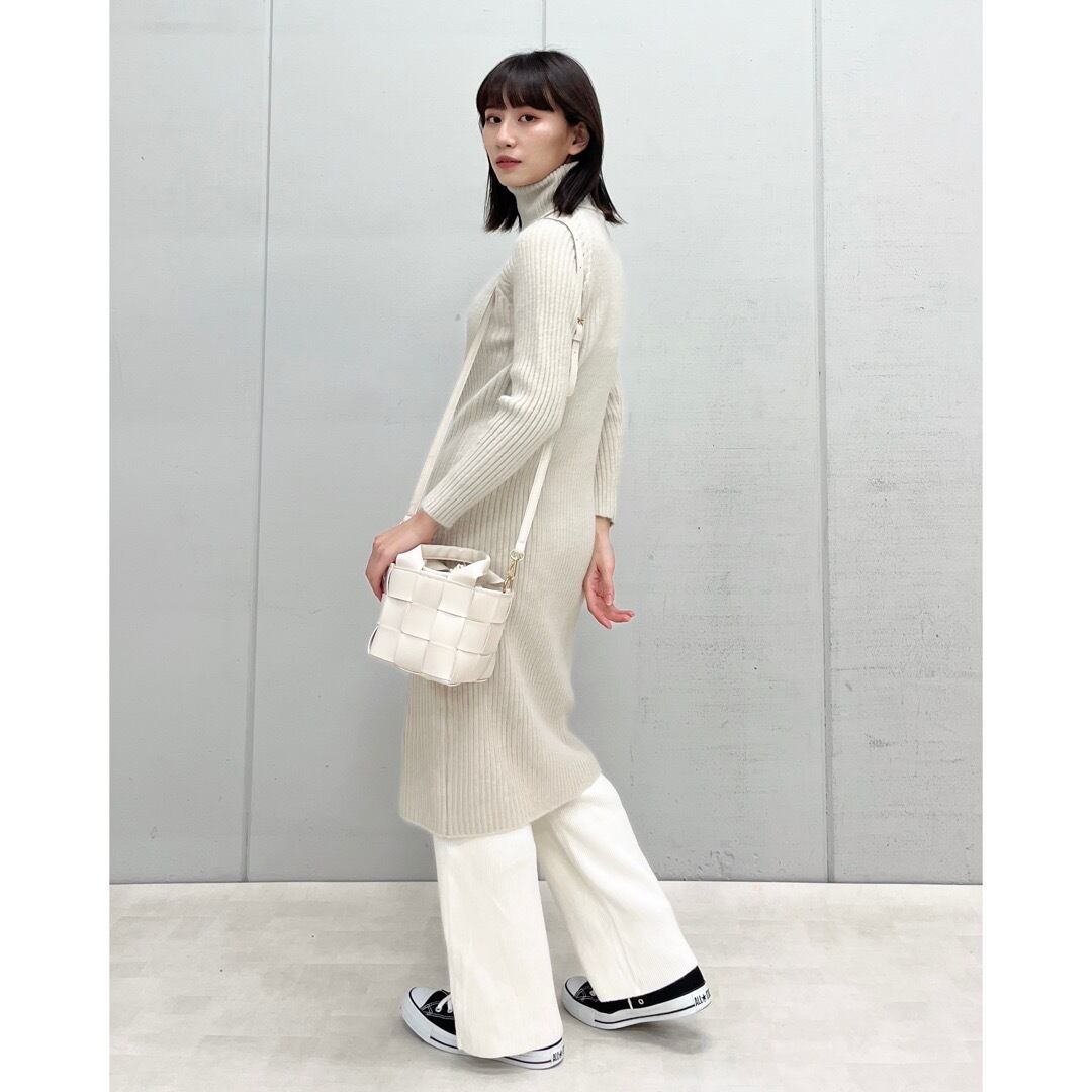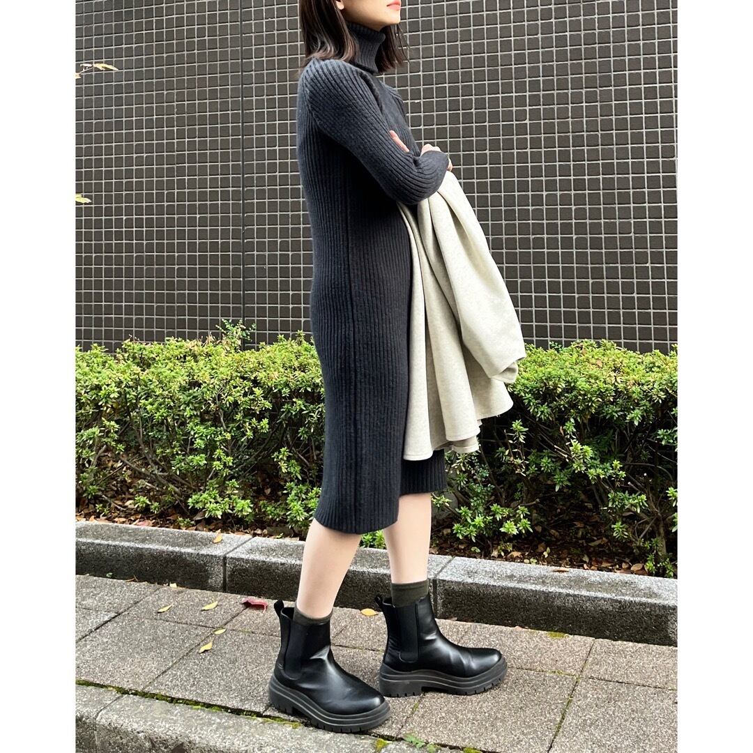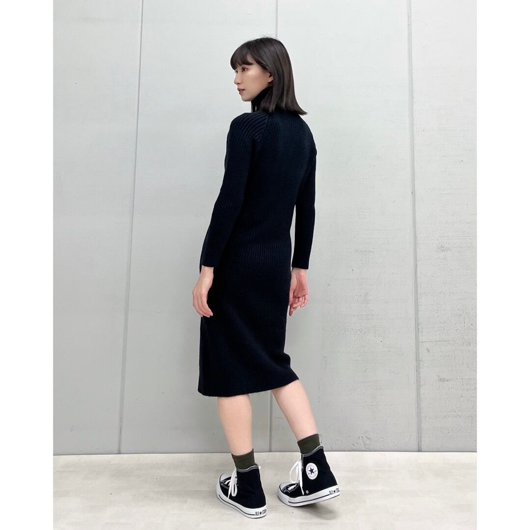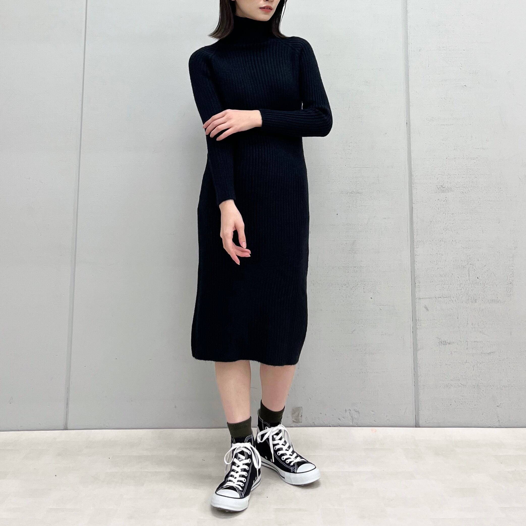 タートルネックリブニットワンピース