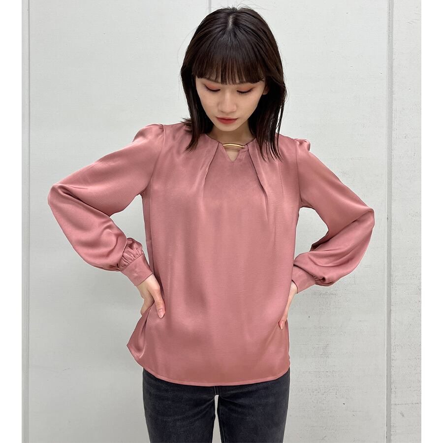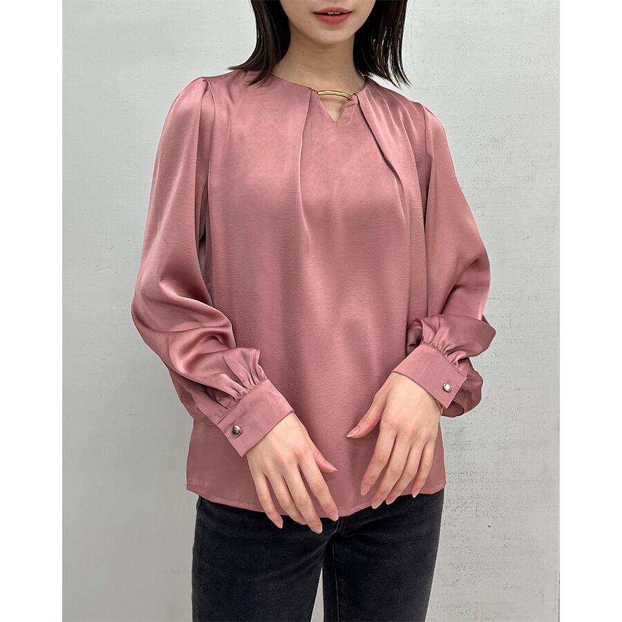 首元のメタルパーツがきれいめコーデにアクセントを加えてくれるブラウス。