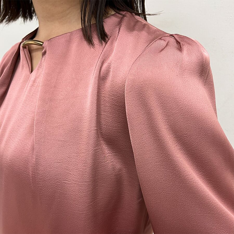 ツヤ感のある軽やかな生地が女性らしく、オフィスカジュアルにもぴったりの一枚。