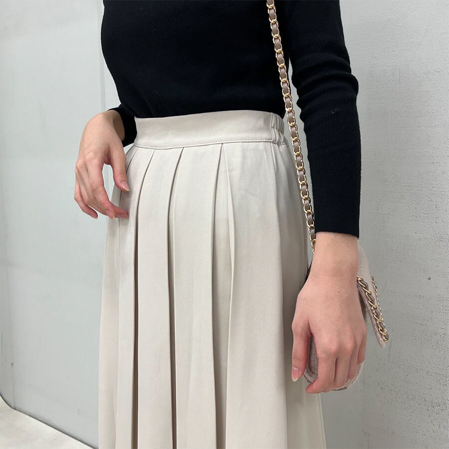 カジュアル〜大人のきれいめスタイルまで、幅広いコーディネートが実現出来る、持っておきたい定番スカートです。