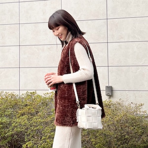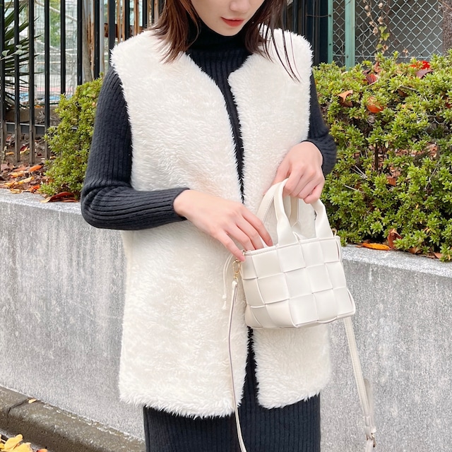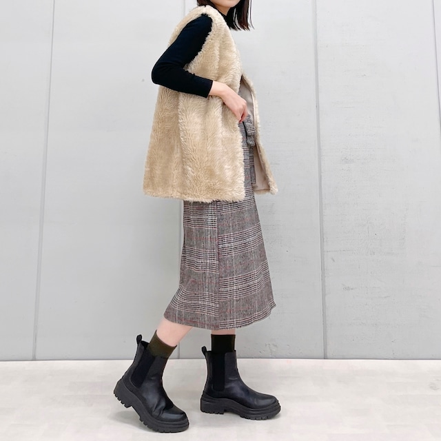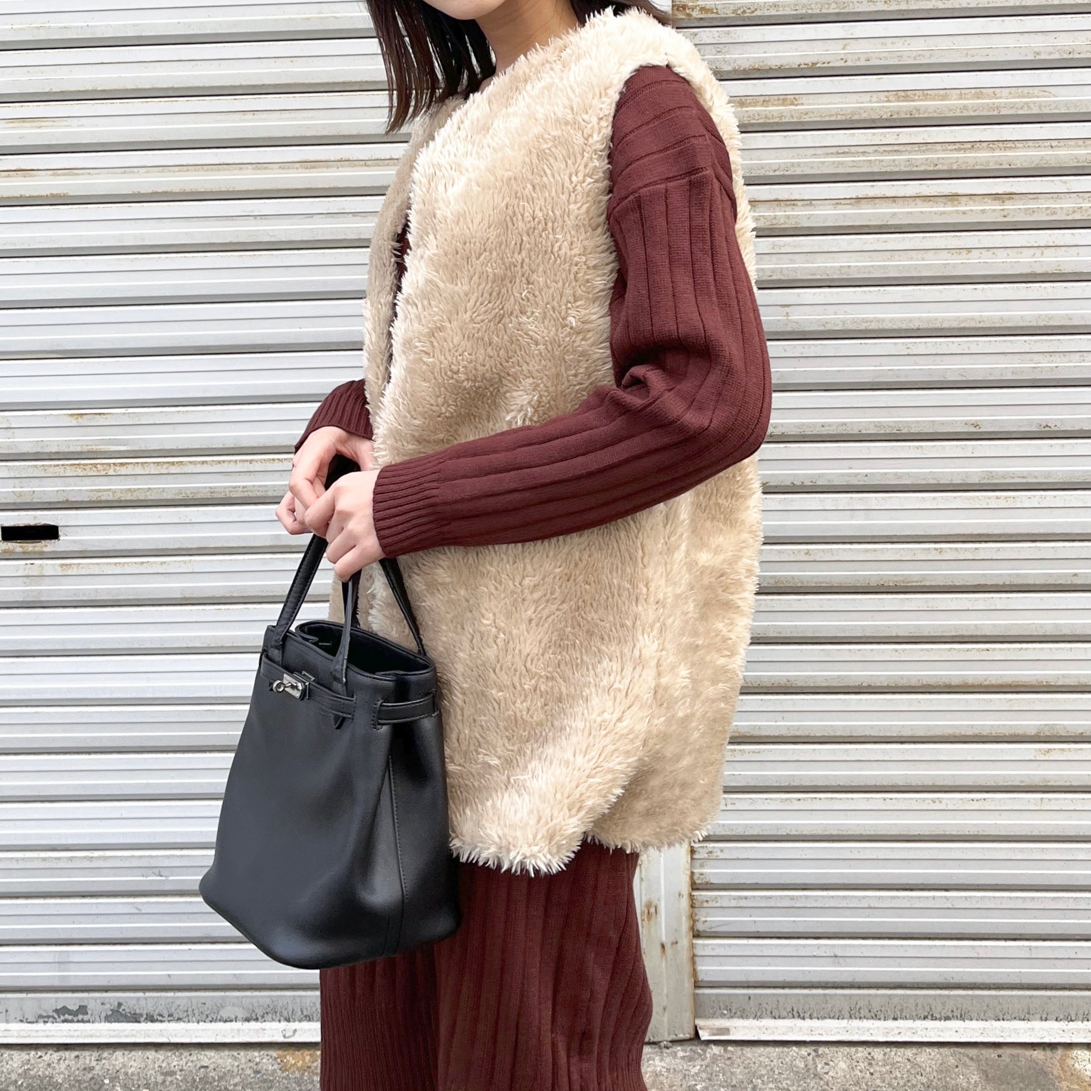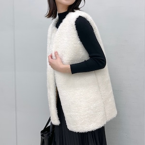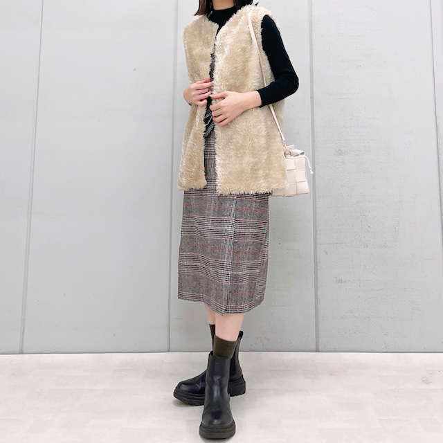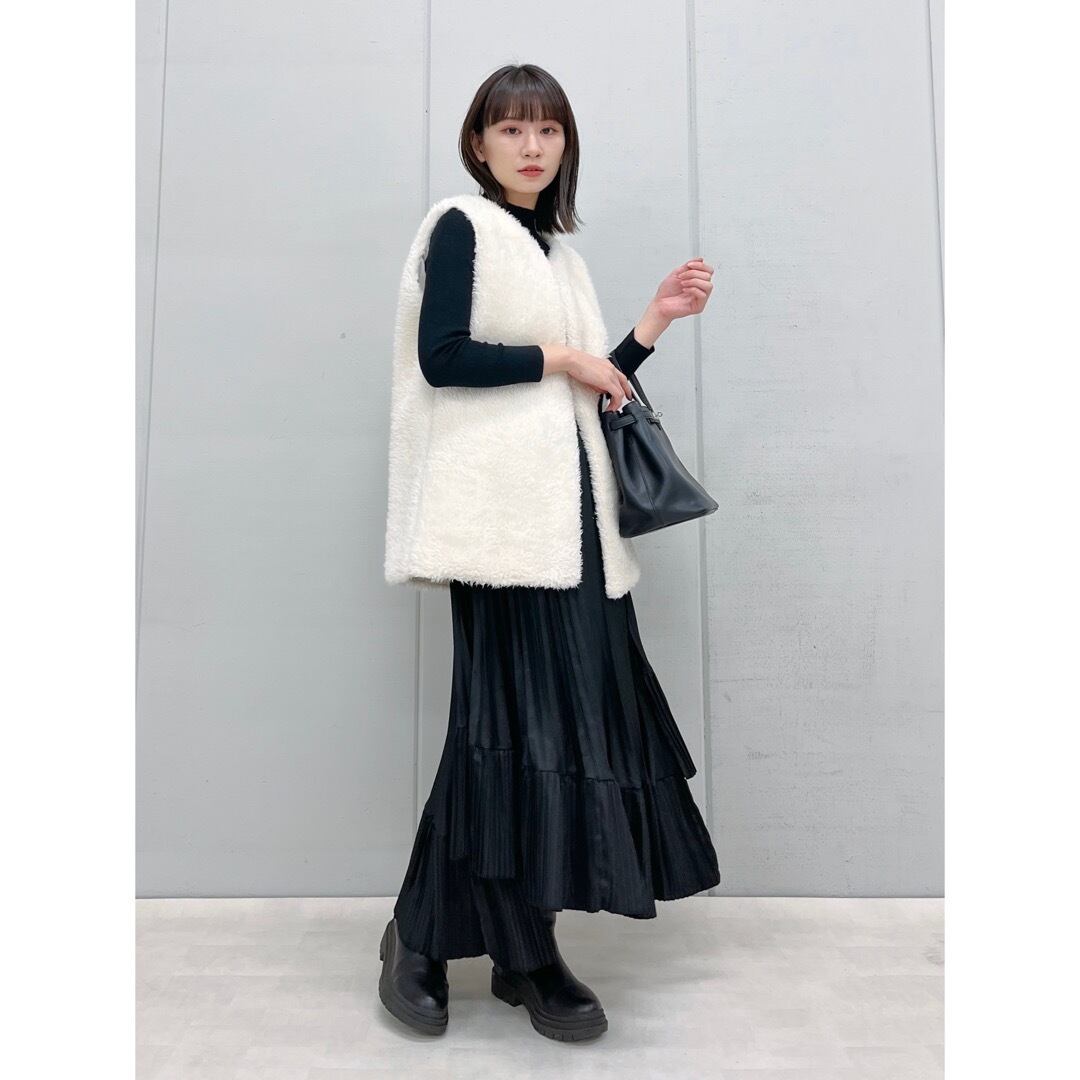 ボリュームのあるファーがコーディネートのポイントにぴったりのファーベスト。