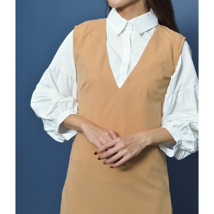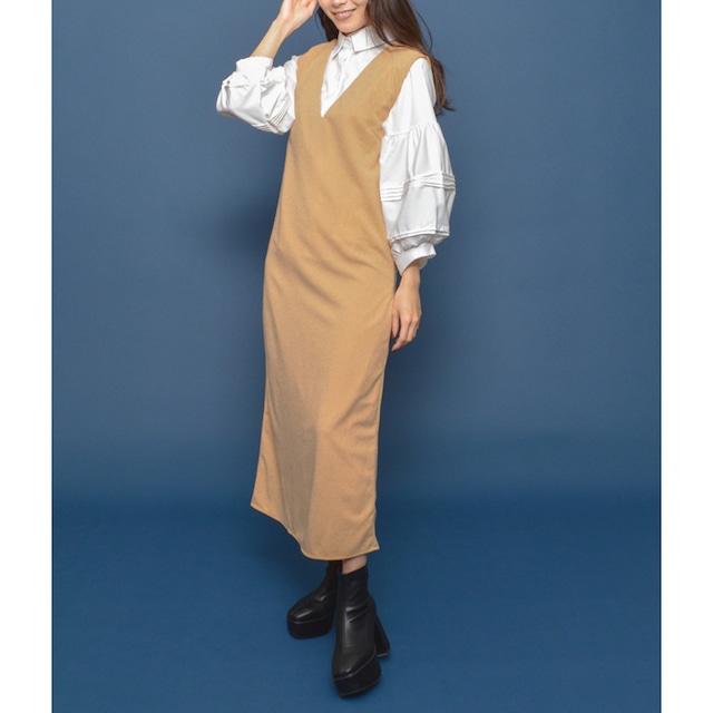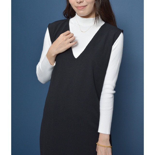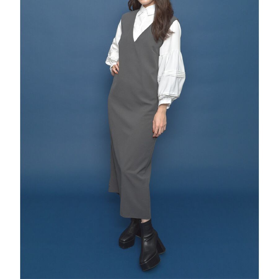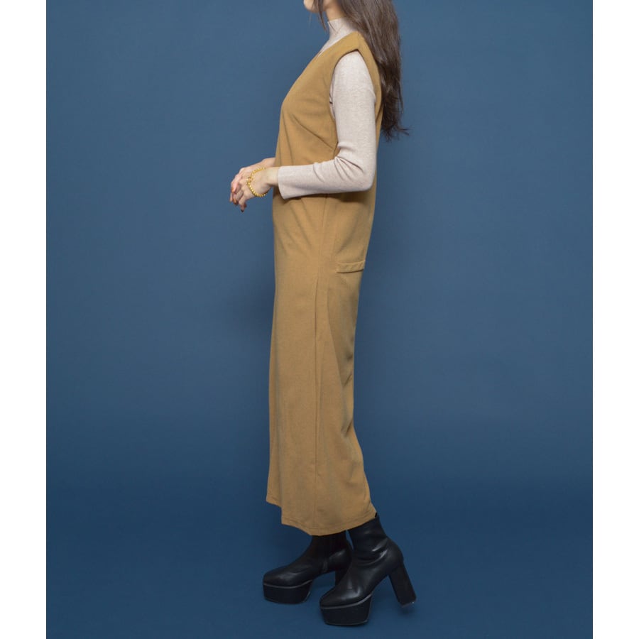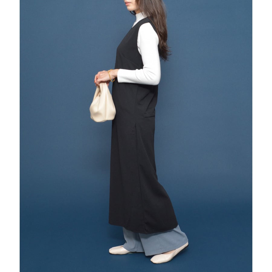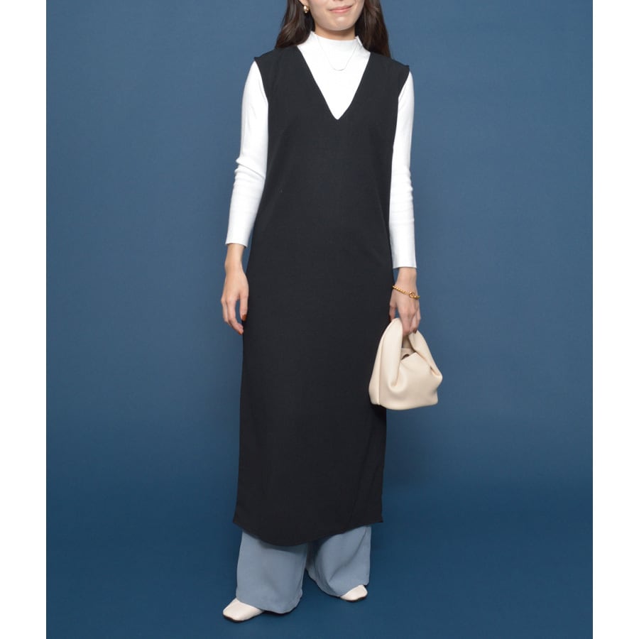深いVネックが大人のこなれ感溢れるジャンパースカート。