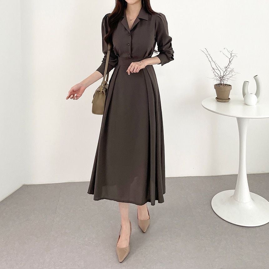 #ワンピース/#ロングワンピース/#韓国/#オフィスカジュアル/#OL/#エレガント/#オケージョン/#パーティードレス#タック/#シャツワンピ