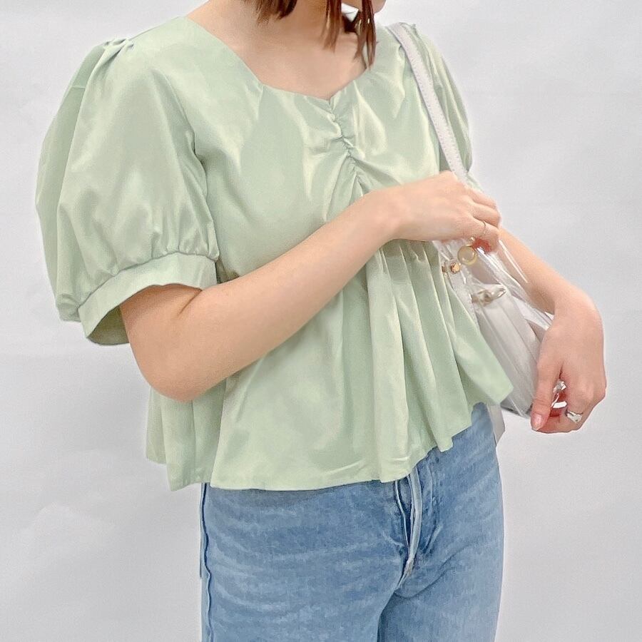 ギャザー トップス レディース シンプル カジュアル 大人 上品 フェミニン コーディネート 着回し 可愛い