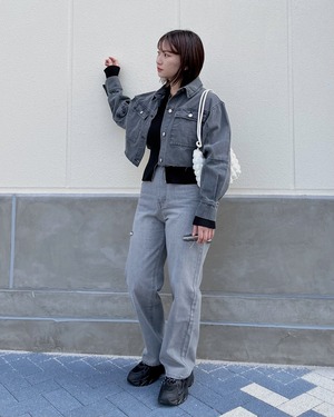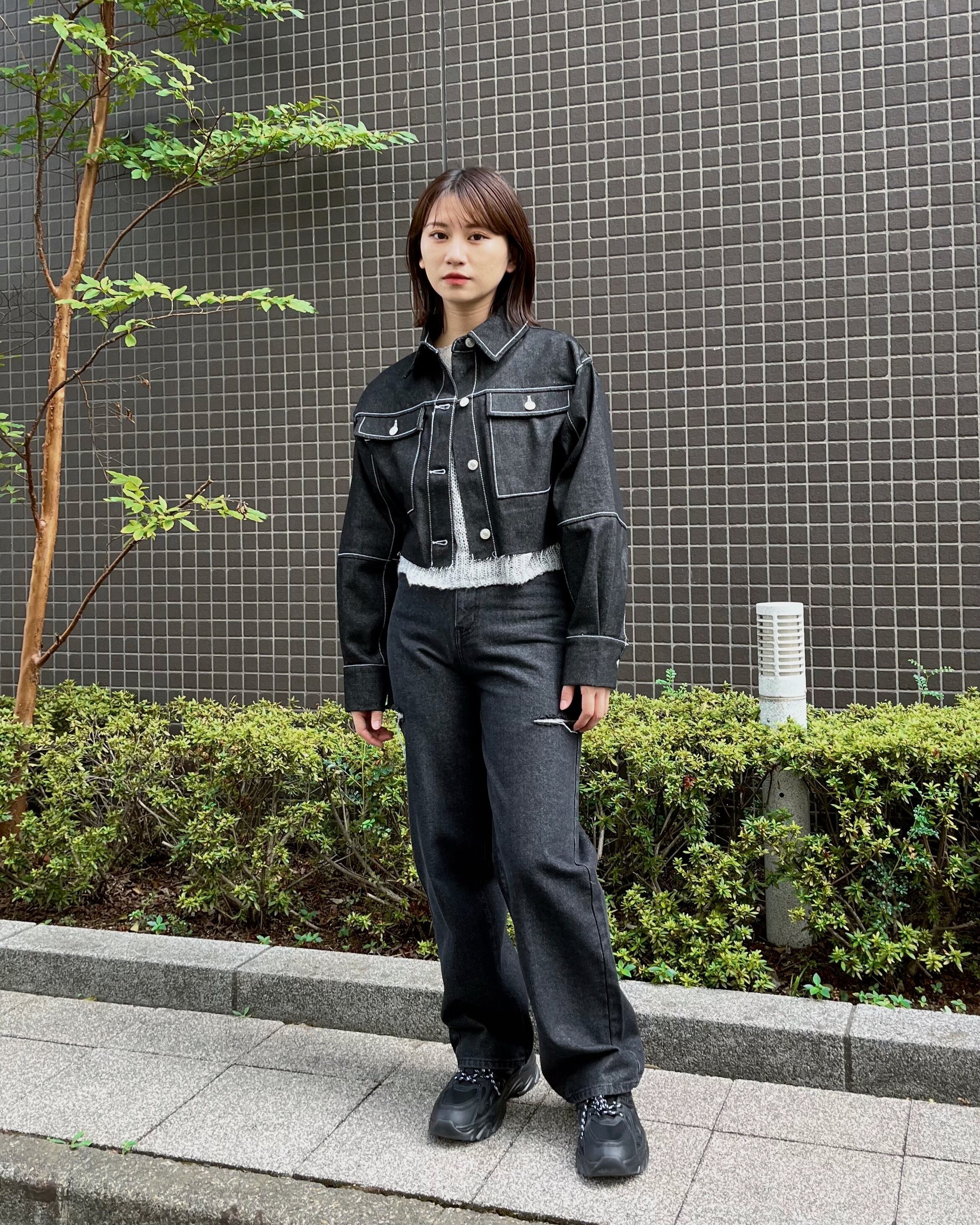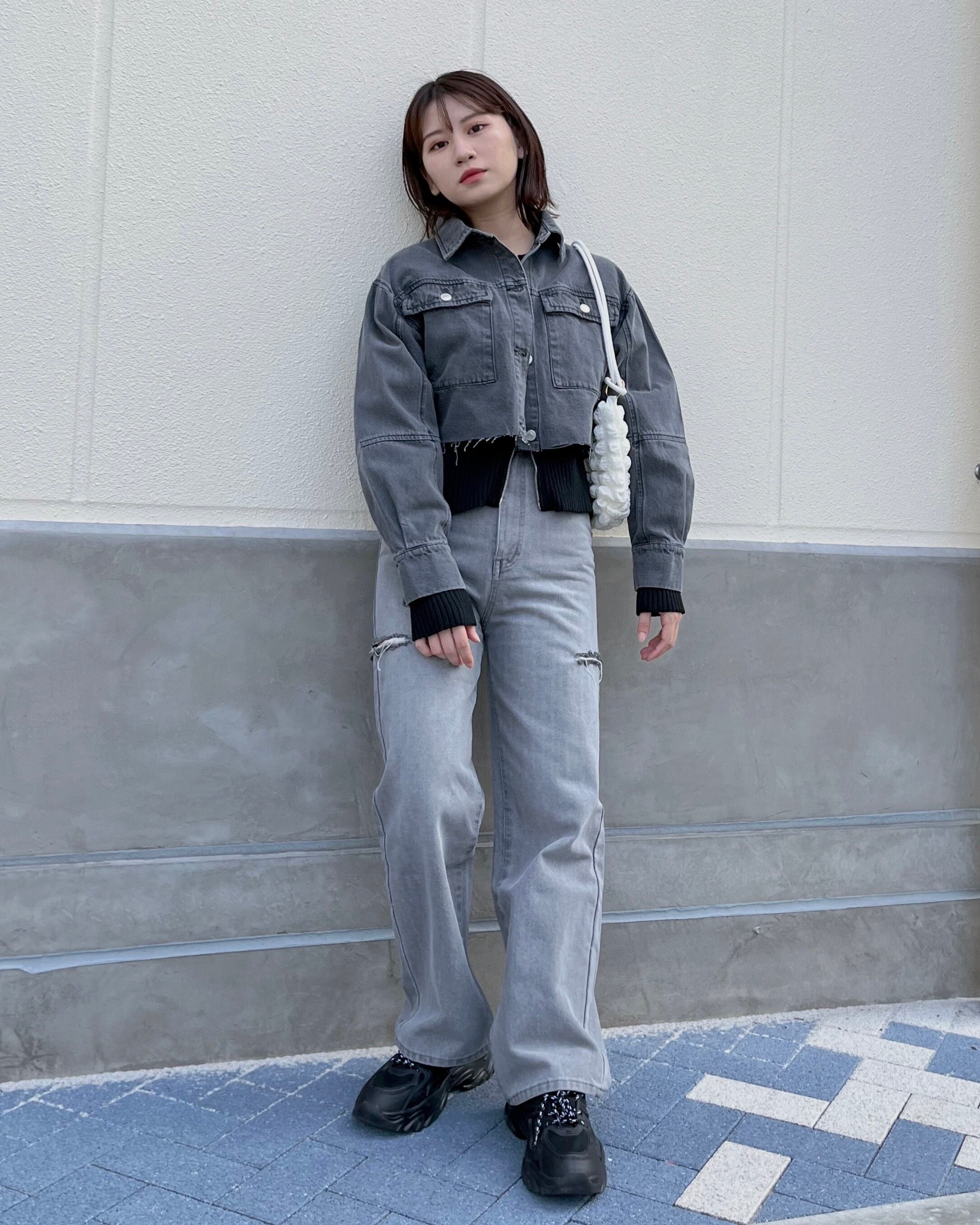 ボトムスを同色のデニムと合わせてセットアップコーデに!