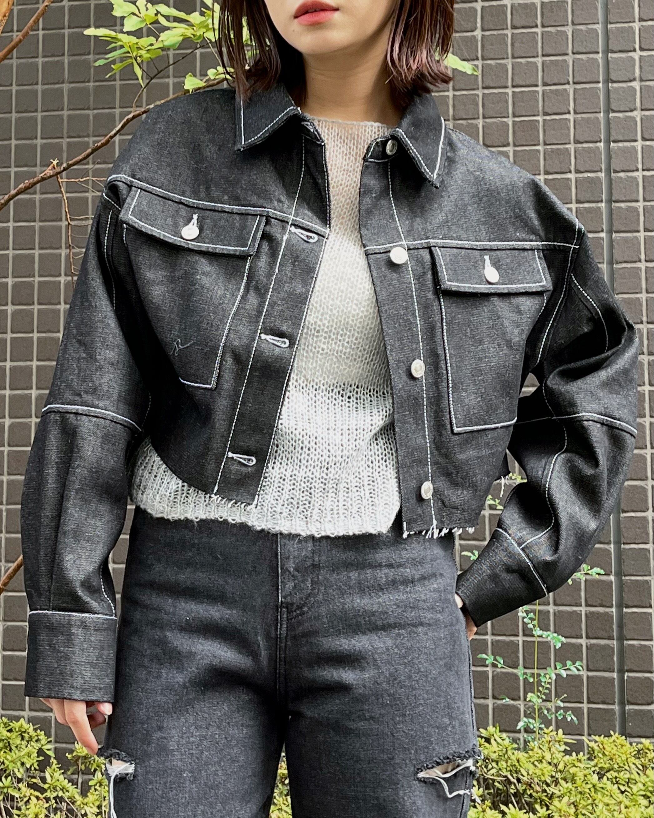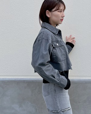 デニム クロップド デニム ジャケット 短丈 レディース 秋服 冬服 セットアップ 韓国コーデ きれいめ カジュアル