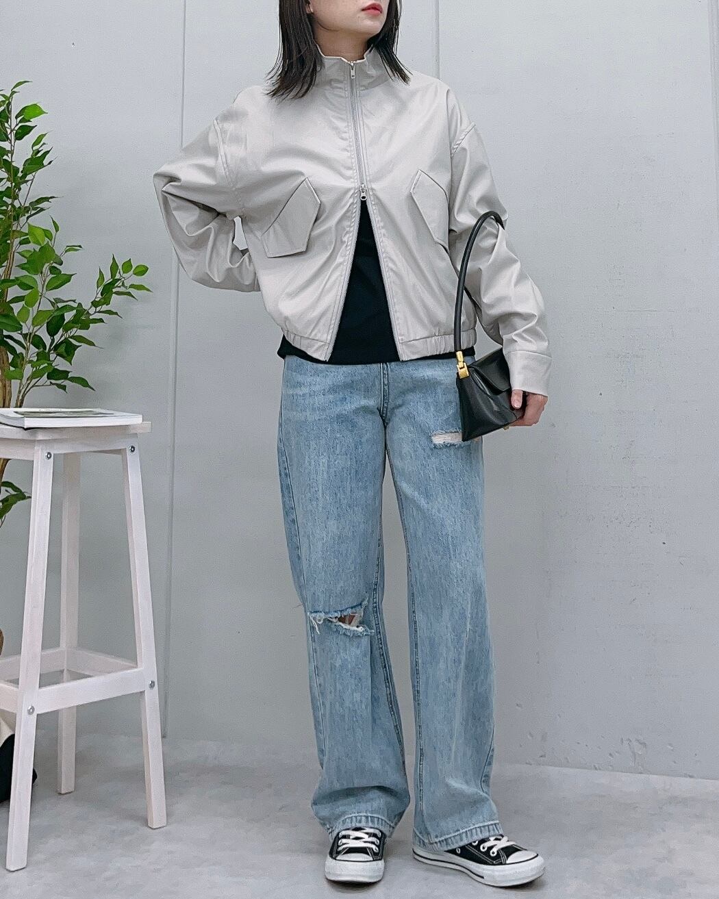 930186 フェイクレザー2wayスタンドカラーブルゾン