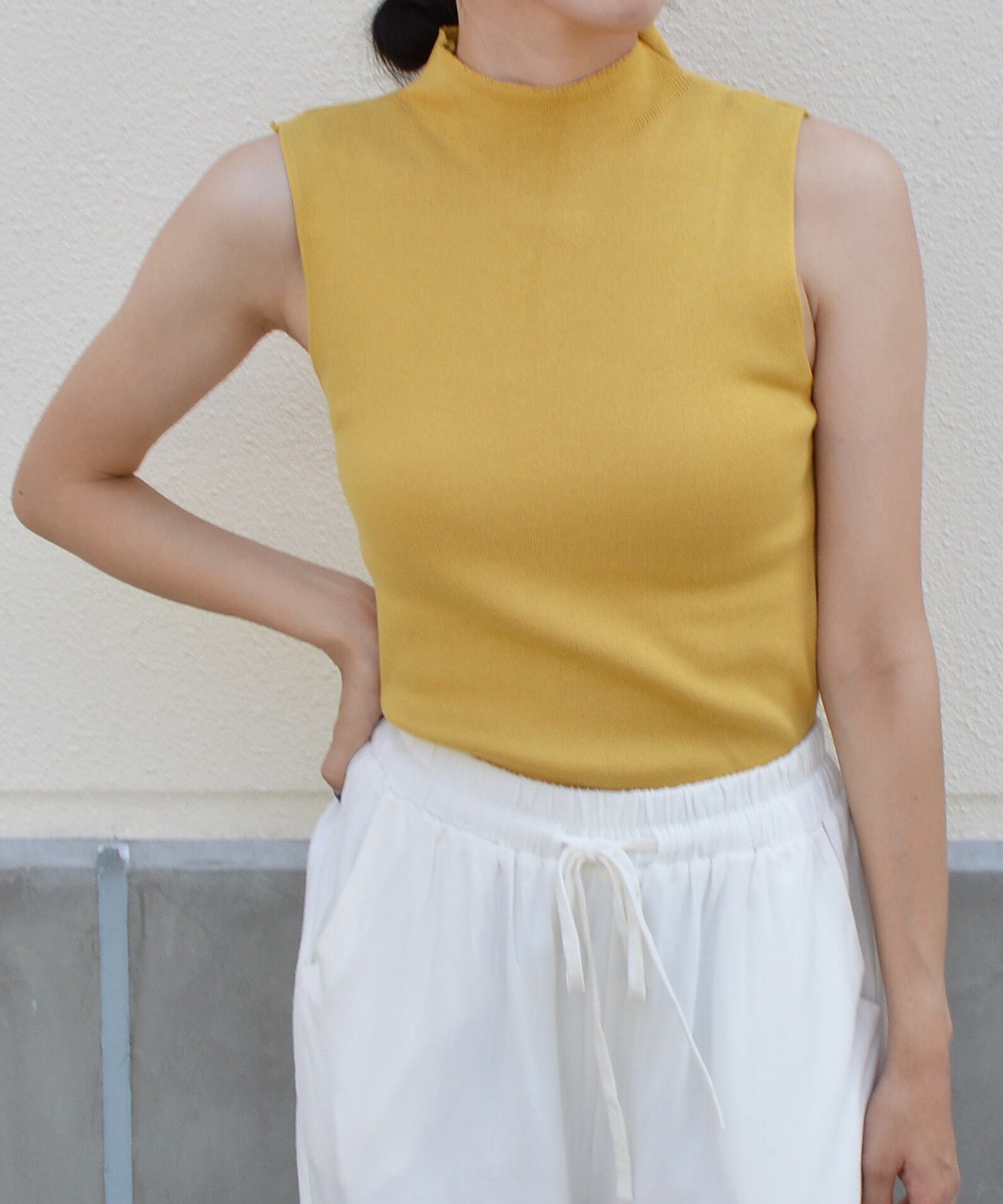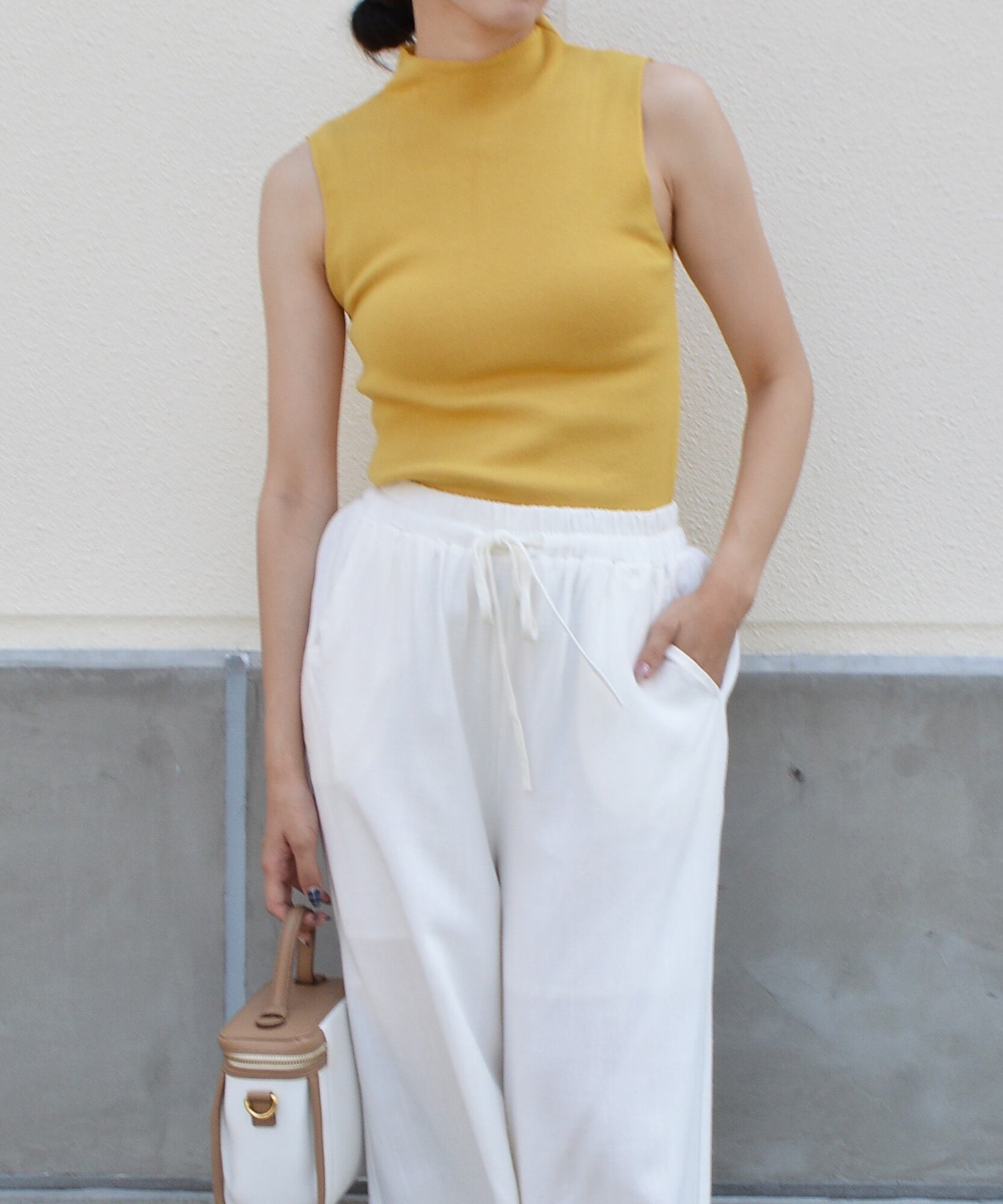 シンプルで着回しやすさ抜群のノースリーブニット。