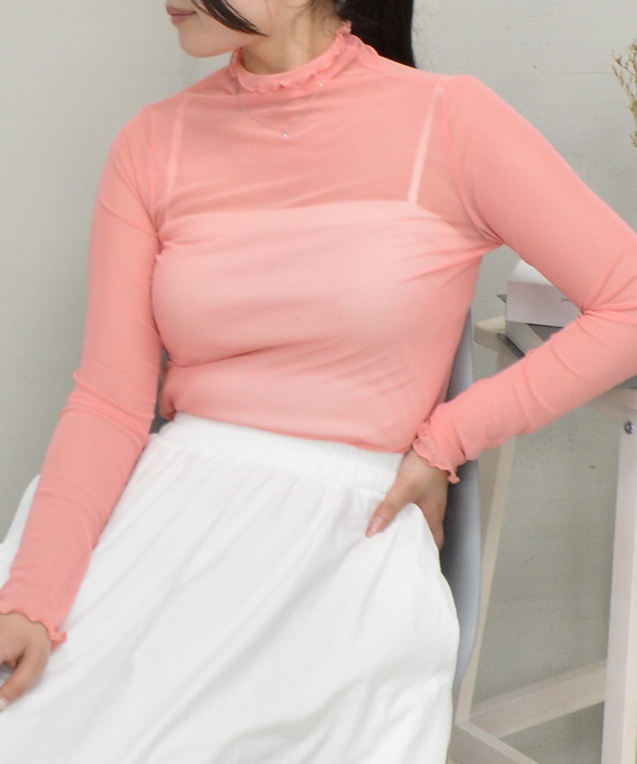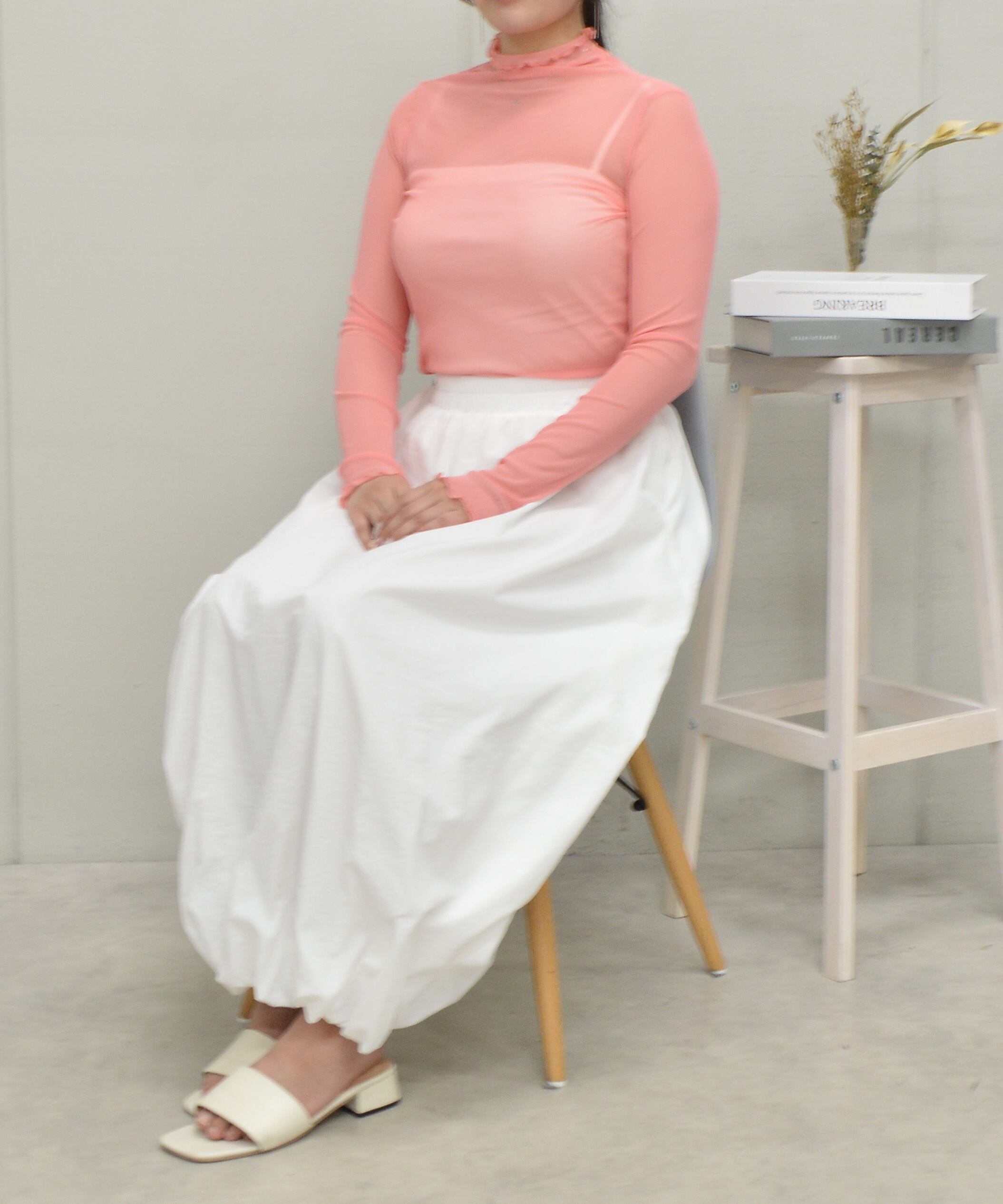 透け感とシルエットが可愛いハイネックシアーブラウス