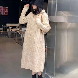 柔らかく着心地の良い素材感のフード付きニットワンピース。