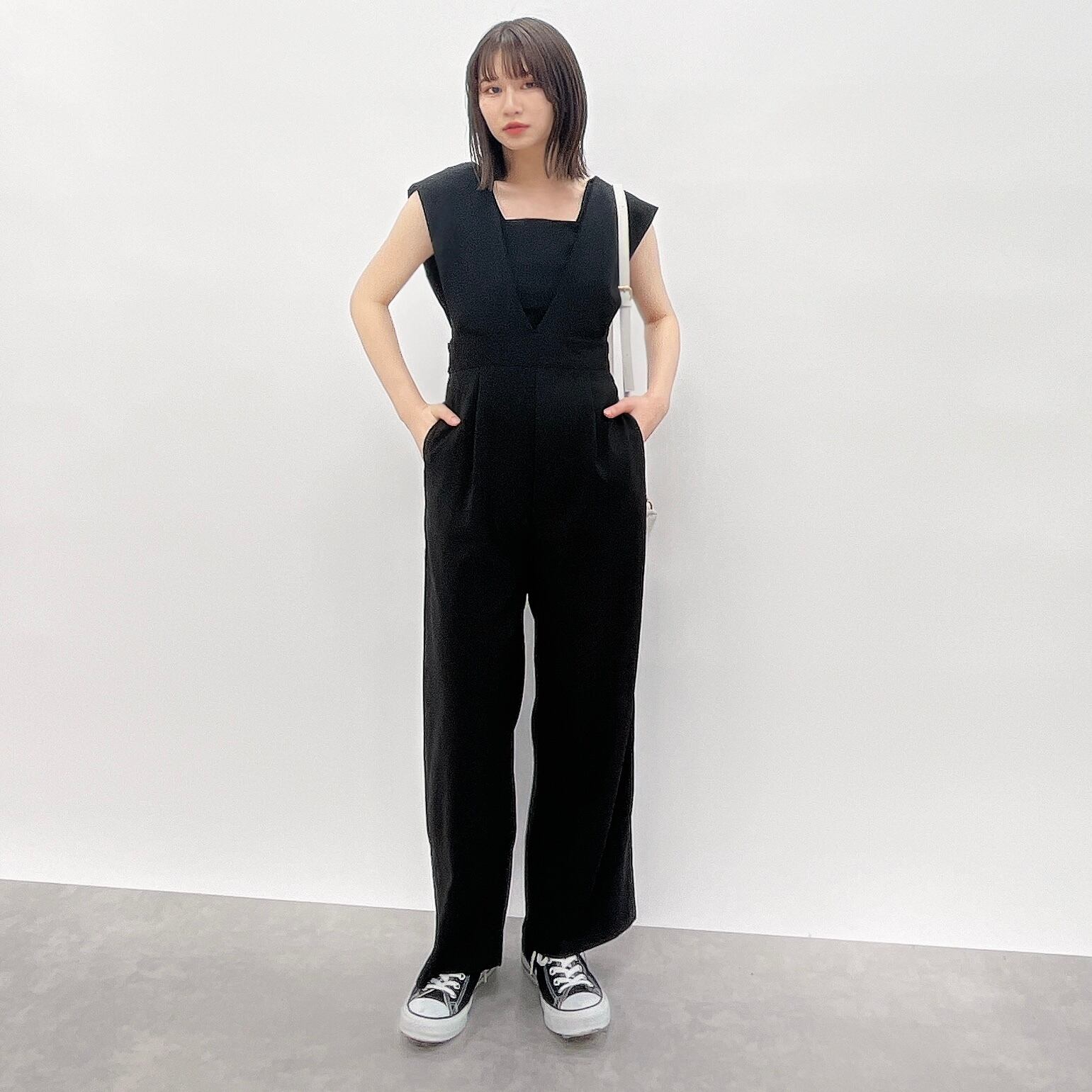 カジュアル 大人 上品 きれいめ 大人かわいい 清楚 ナチュラル シンプル 重ね着 プチプラ ウエストマーク スリーブレス サロペット オールインワン