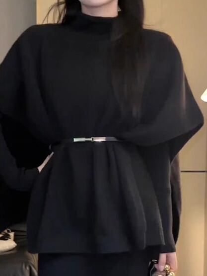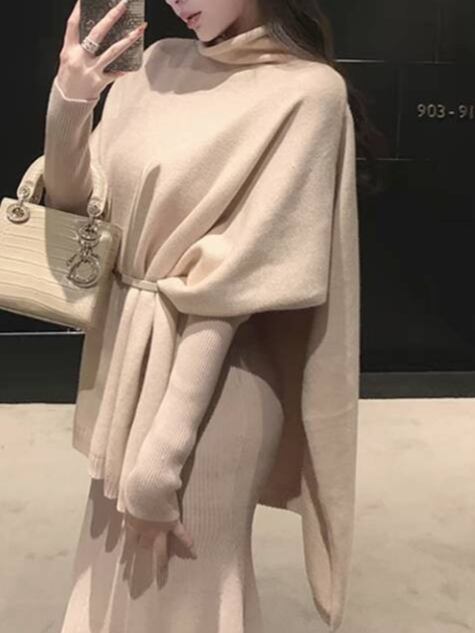 ・首を通すだけのポンチョタイプのニット。