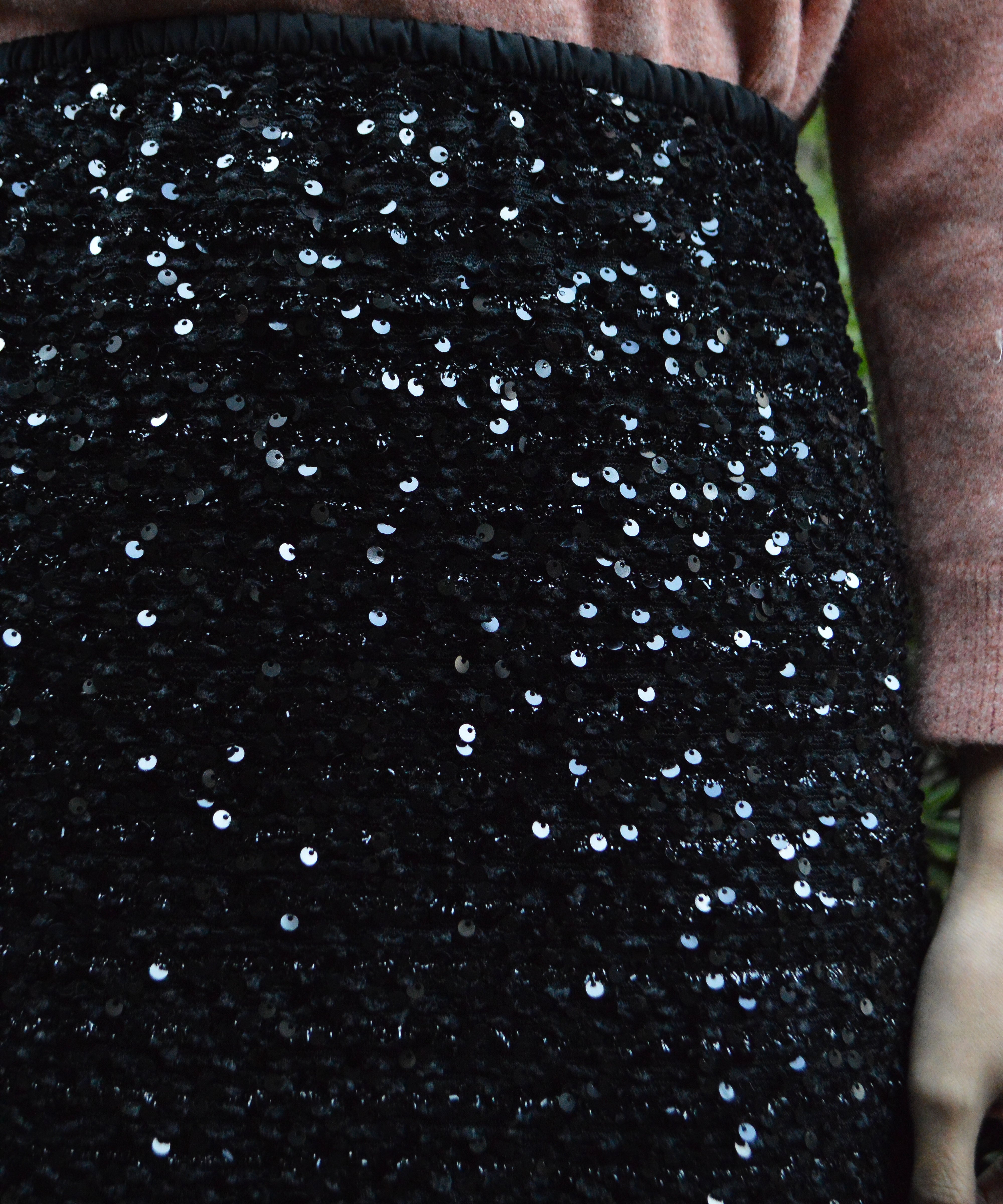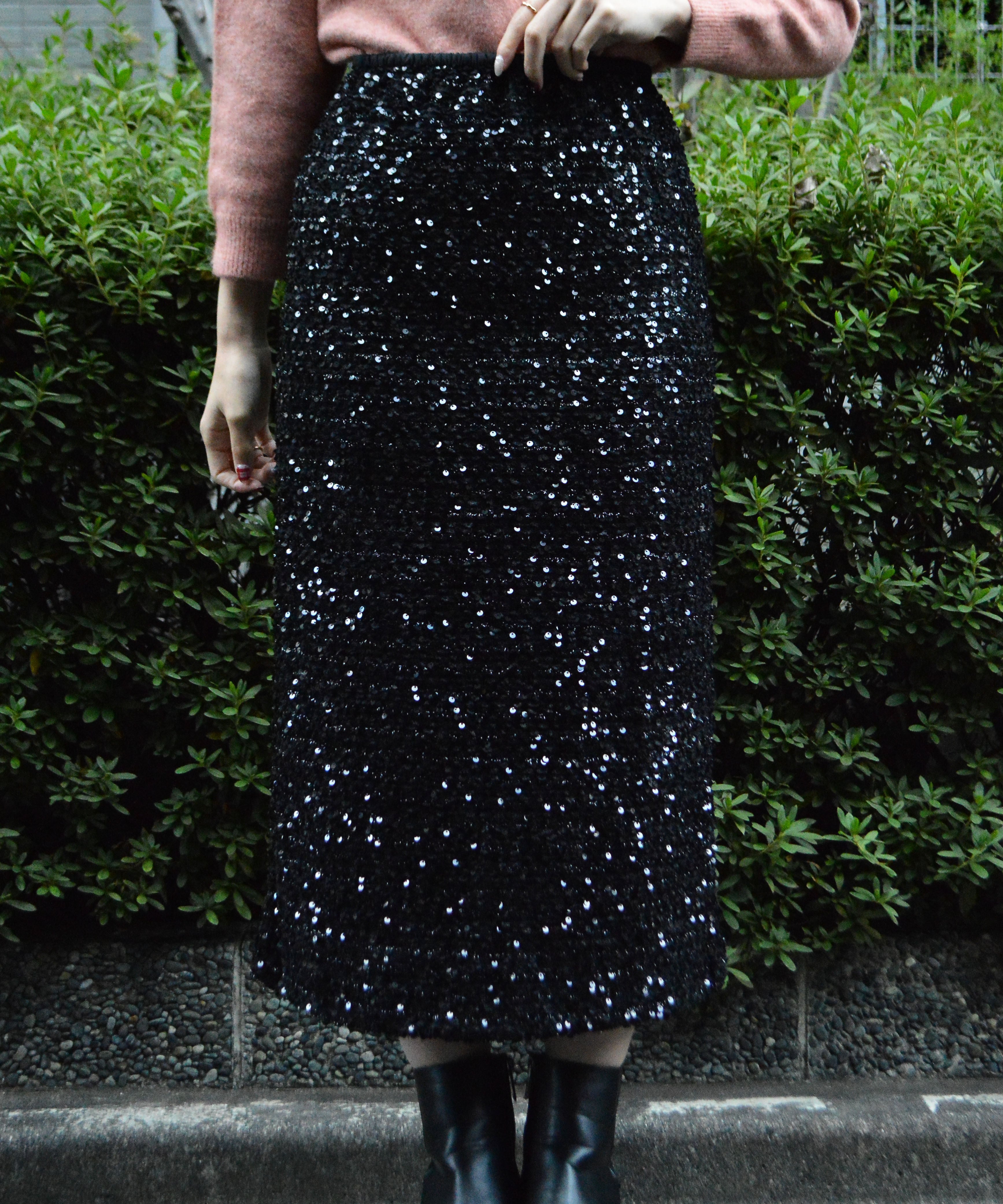 ・全面にスパンコールが施されたスカート。