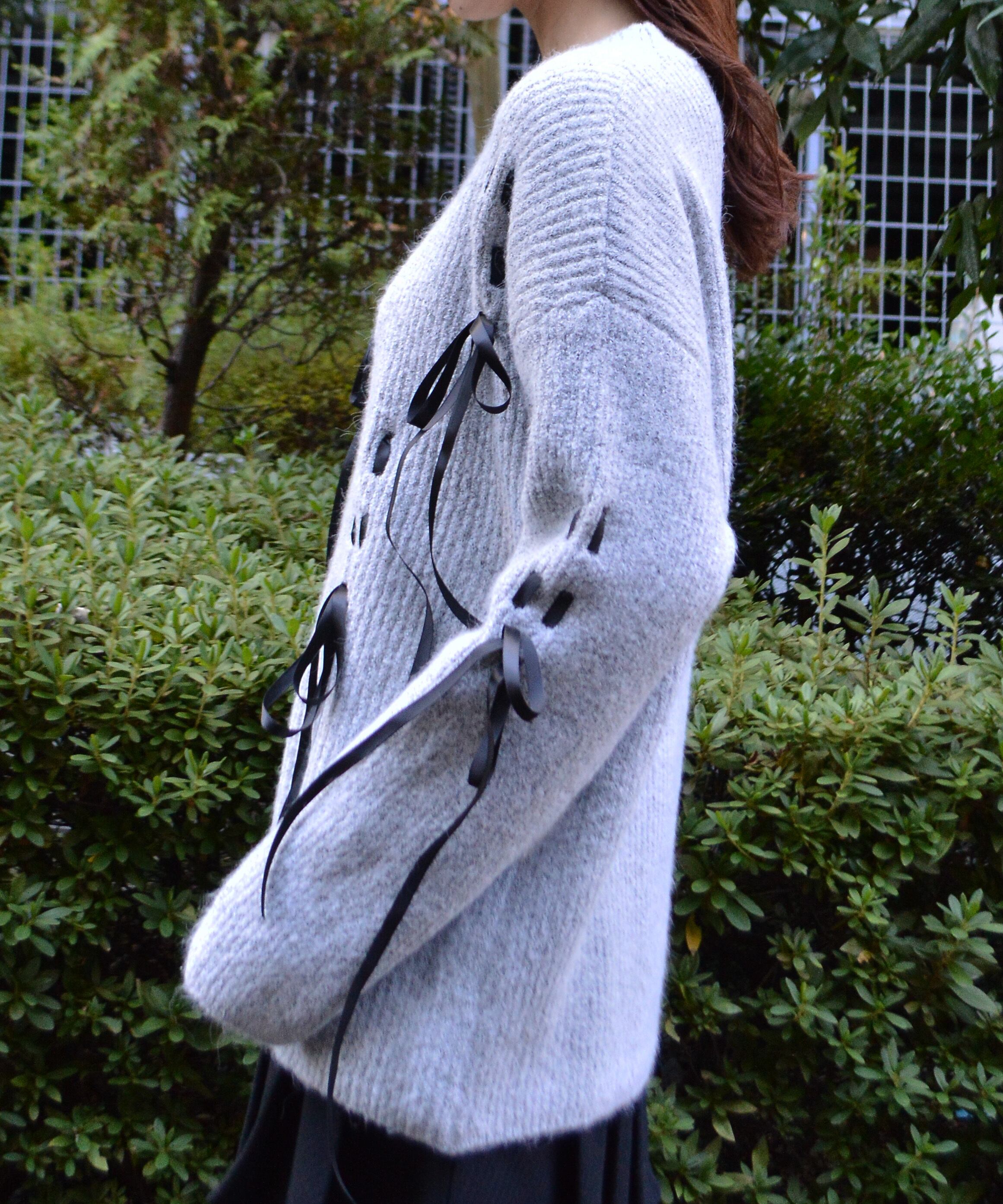 ・編み込みデザインが特徴的で、コーデの主役になる1枚。