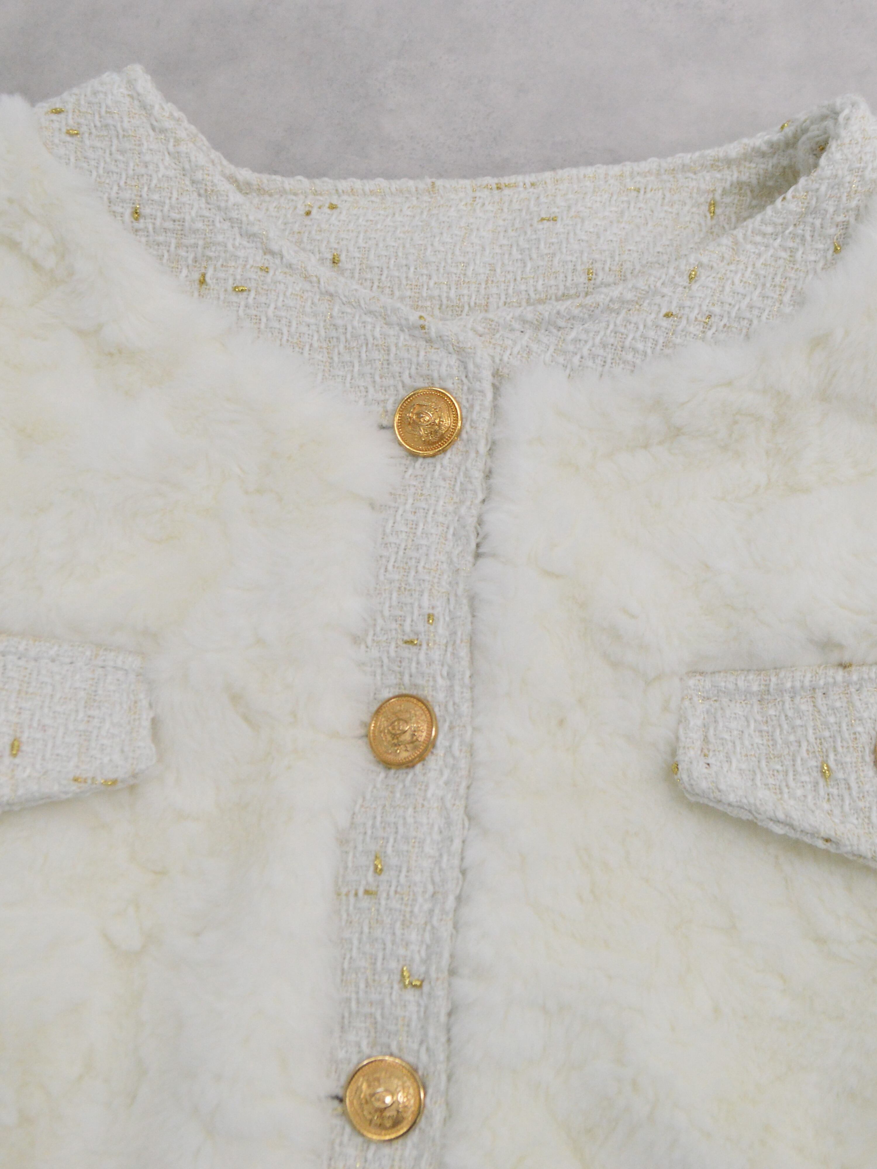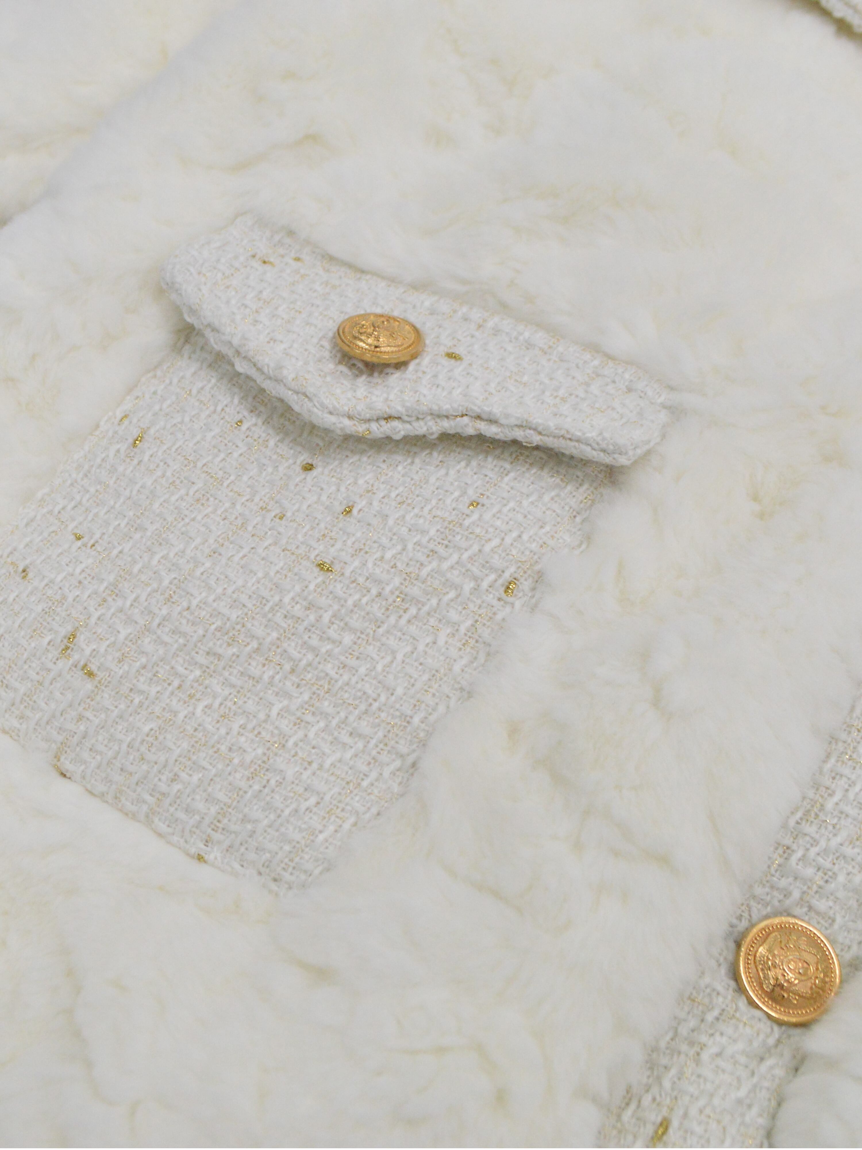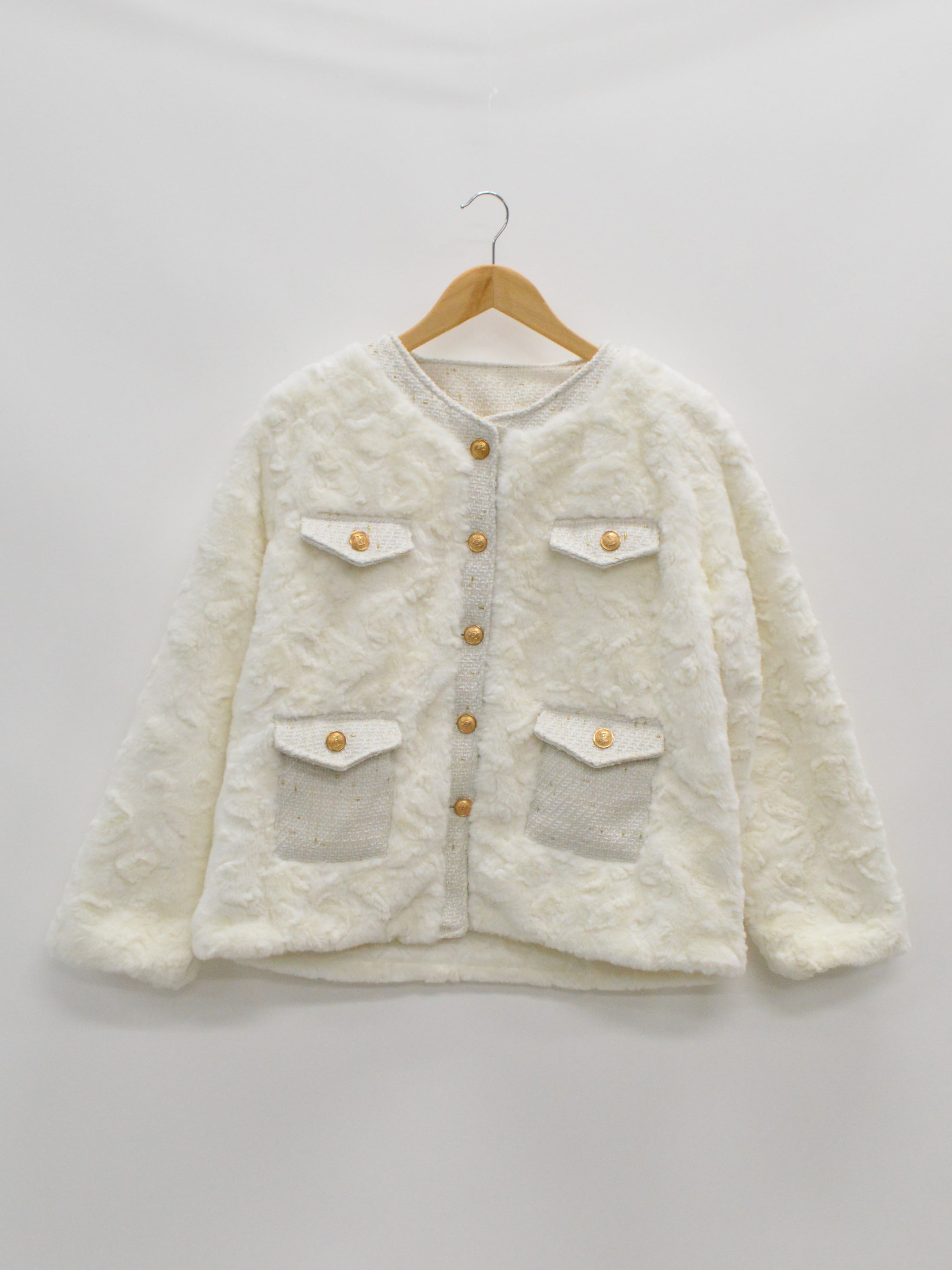 ・ツイードとファーの切り替えで韓国ルックなジャケット