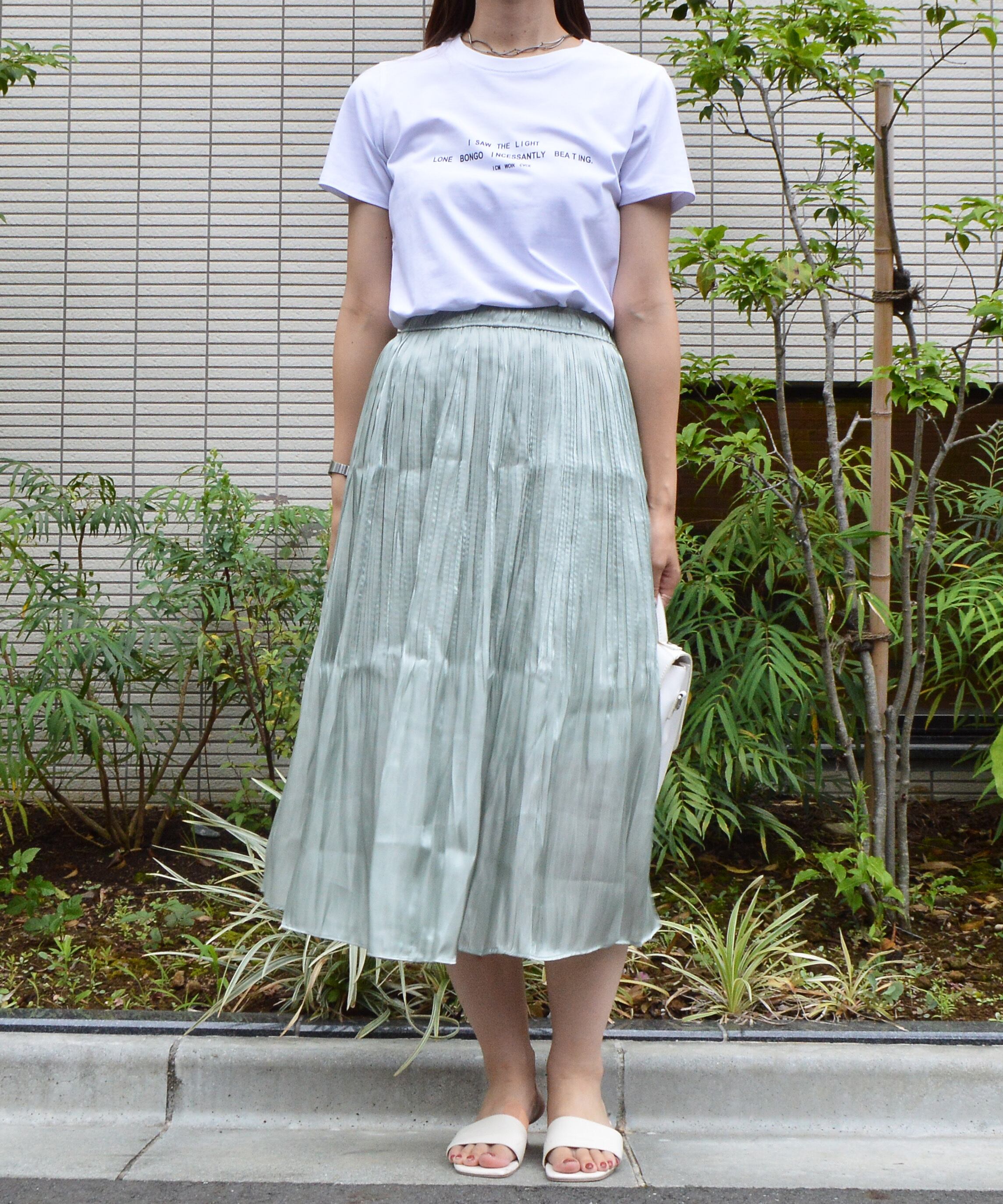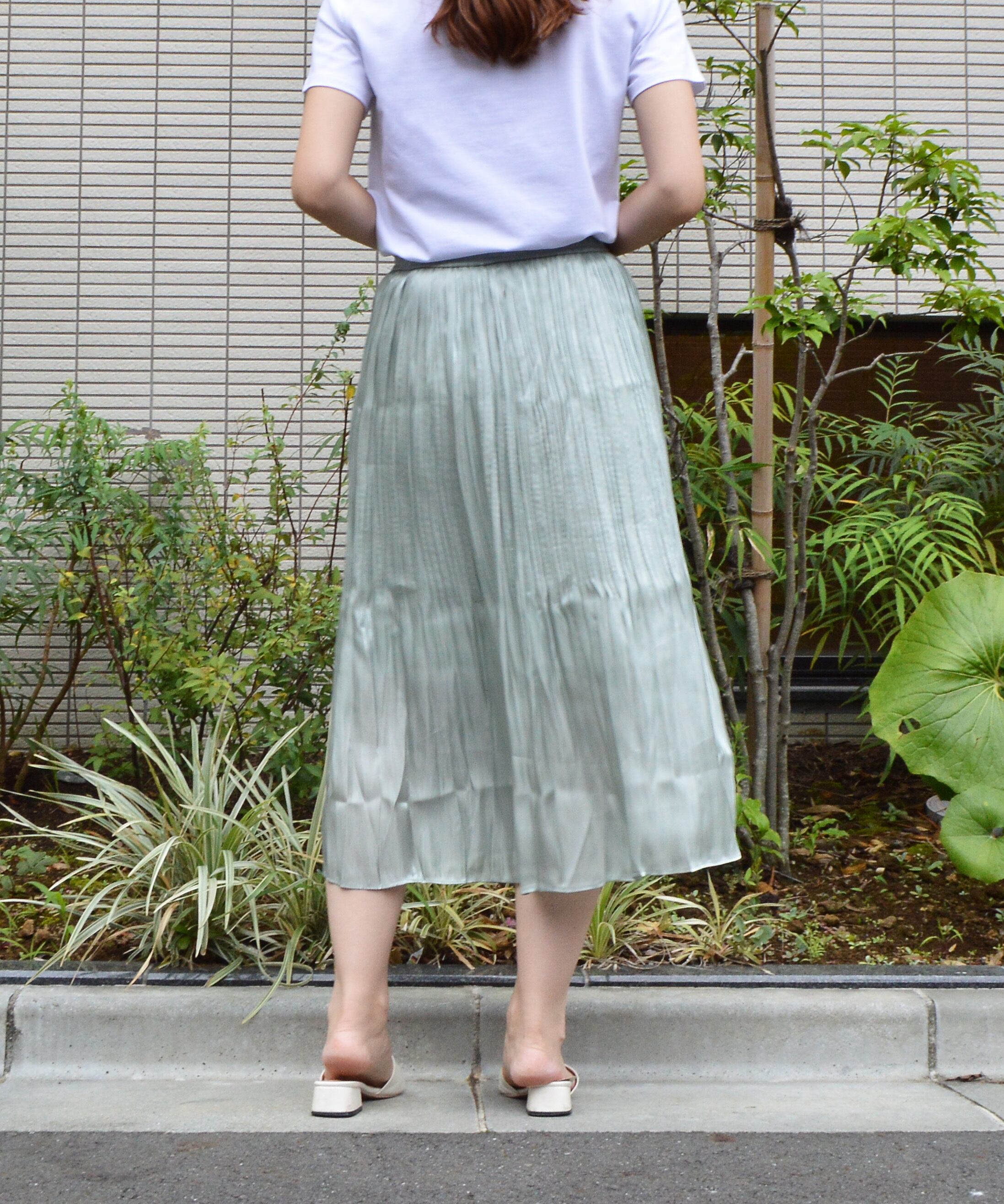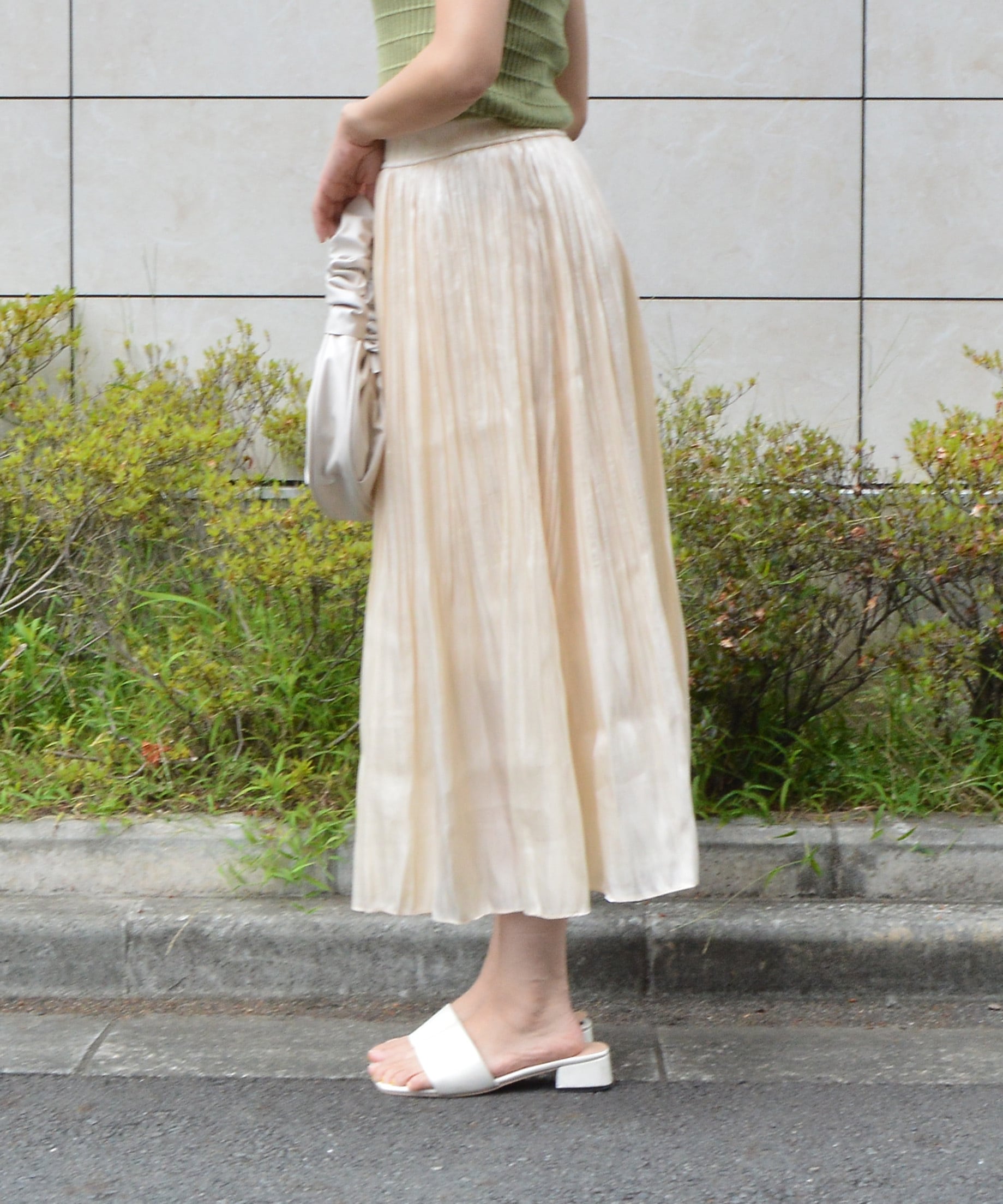 韓国 韓国ファッション フレア フェミニン 夏 夏服 スカート 韓国 ロング丈 ロングスカート サテン サテンプリーツ プリーツスカート プチプラ きれいめ オフィスカジュアル オフィス