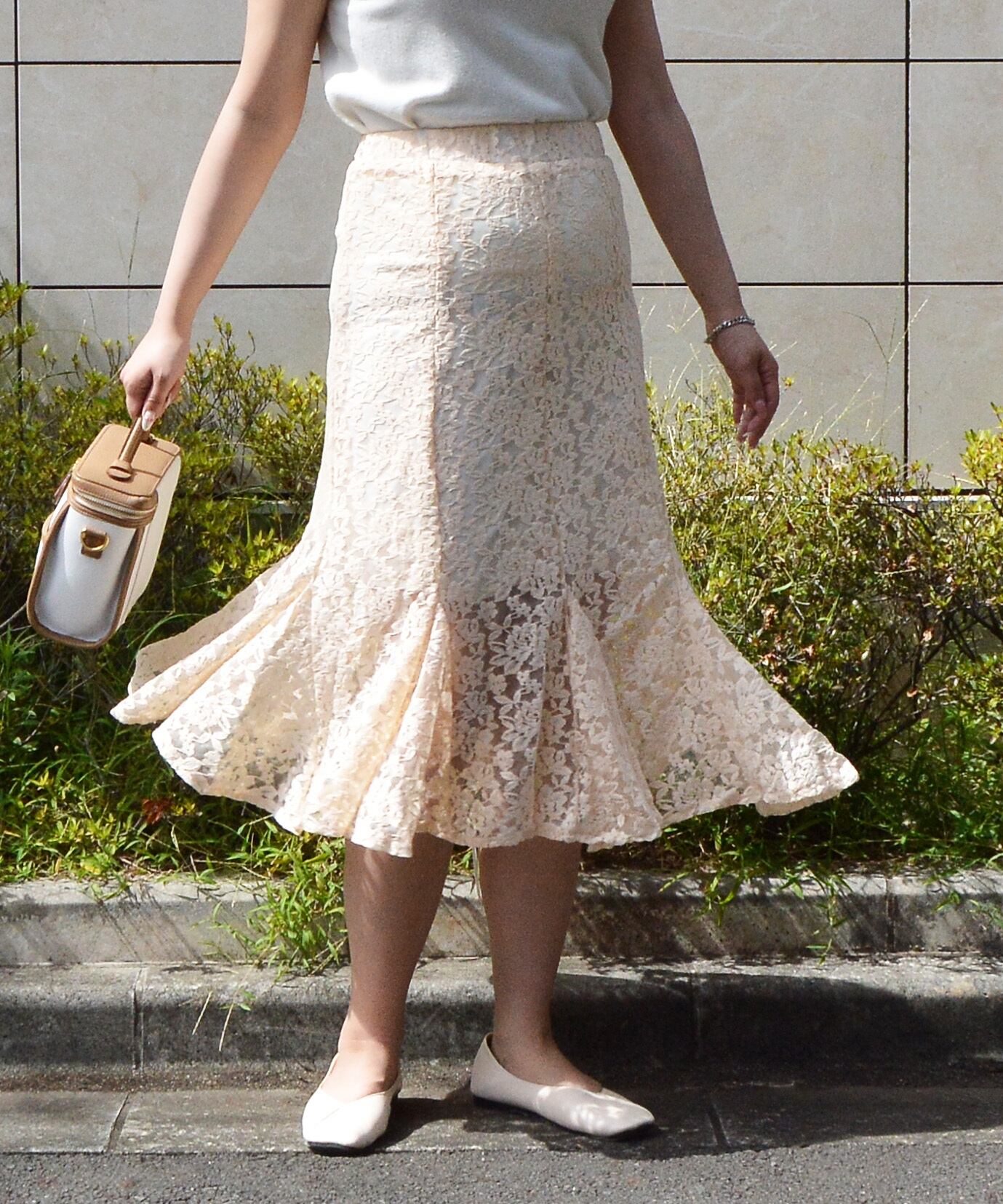 繊細なレース生地が周りと差をつける、トレンドのマーメイドスカート。