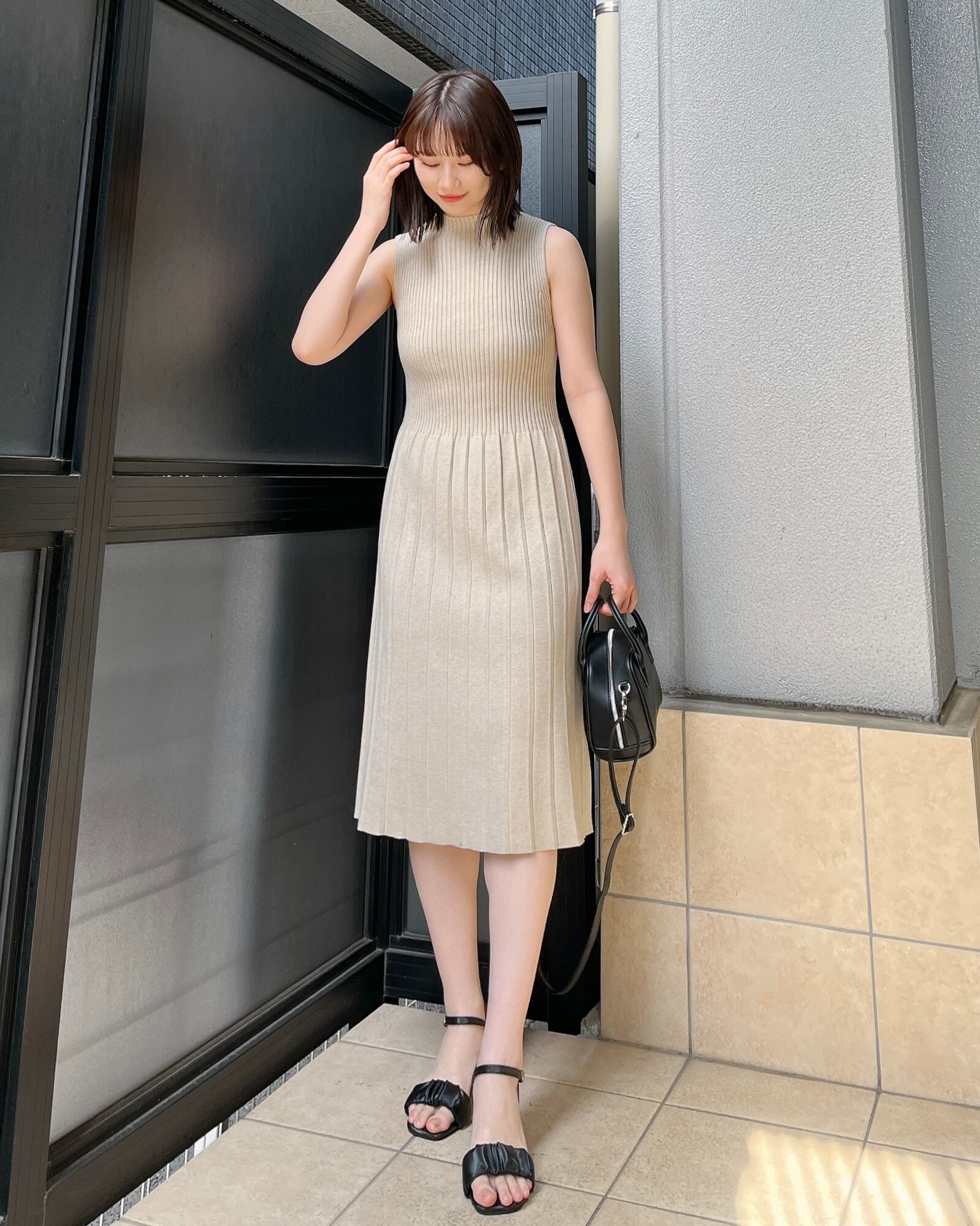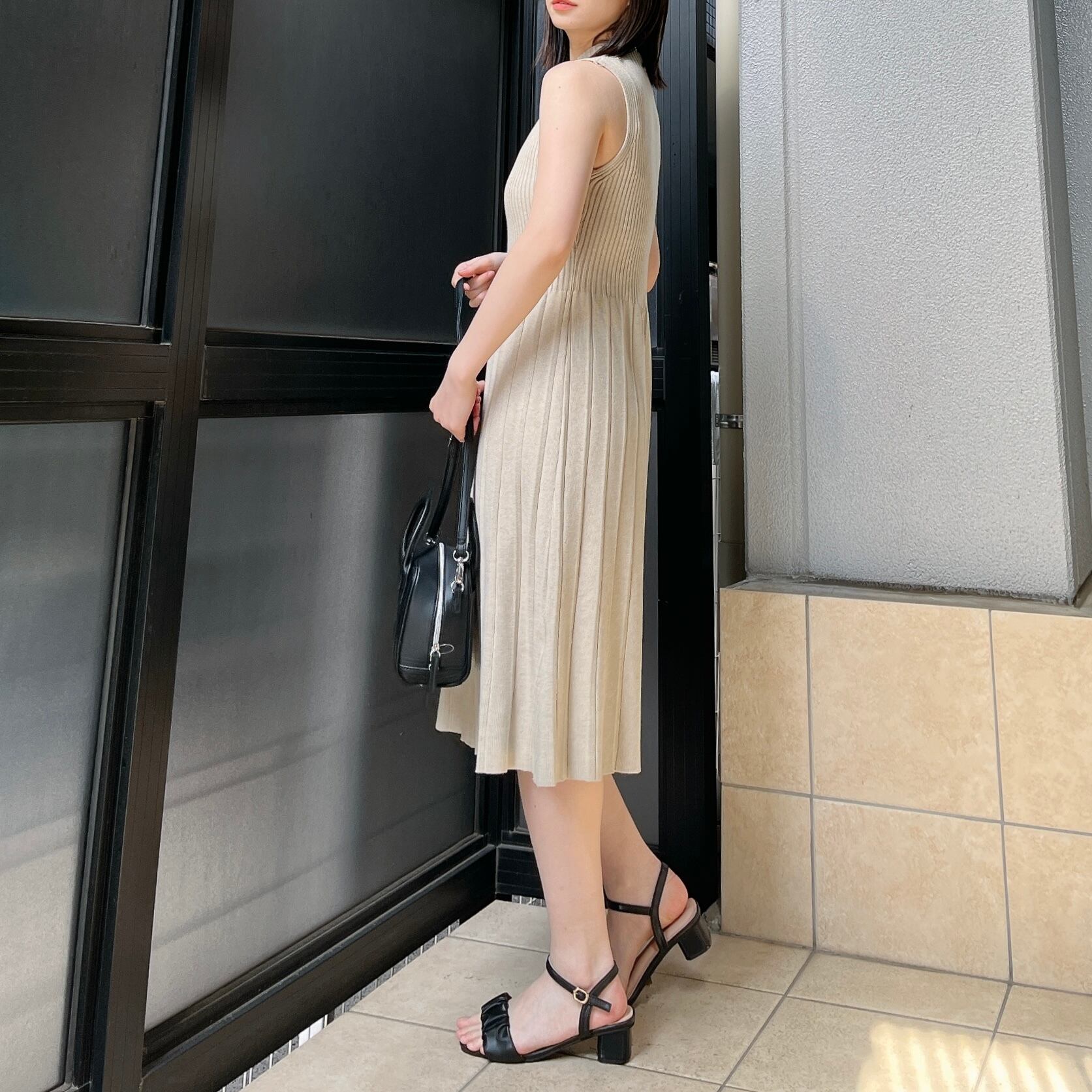 ・ノースリーブが夏らしく、詰まった首周りが高見えポイント