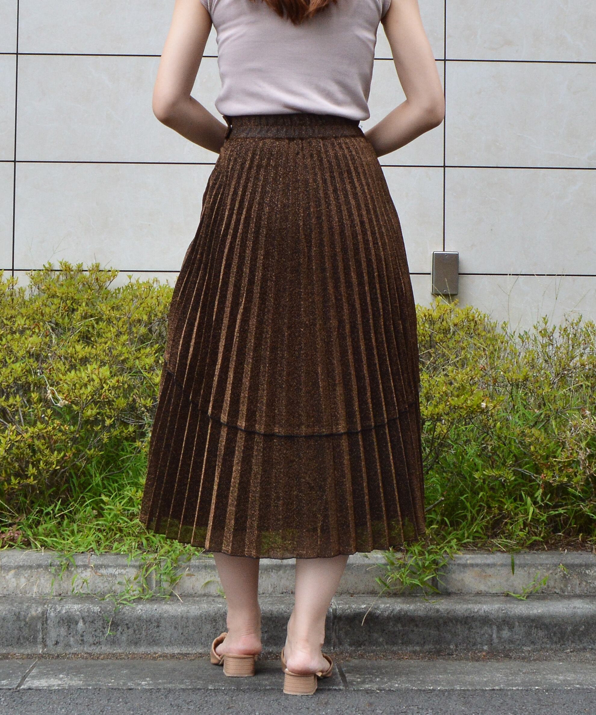 ラメ生地 ティアードプリーツスカート