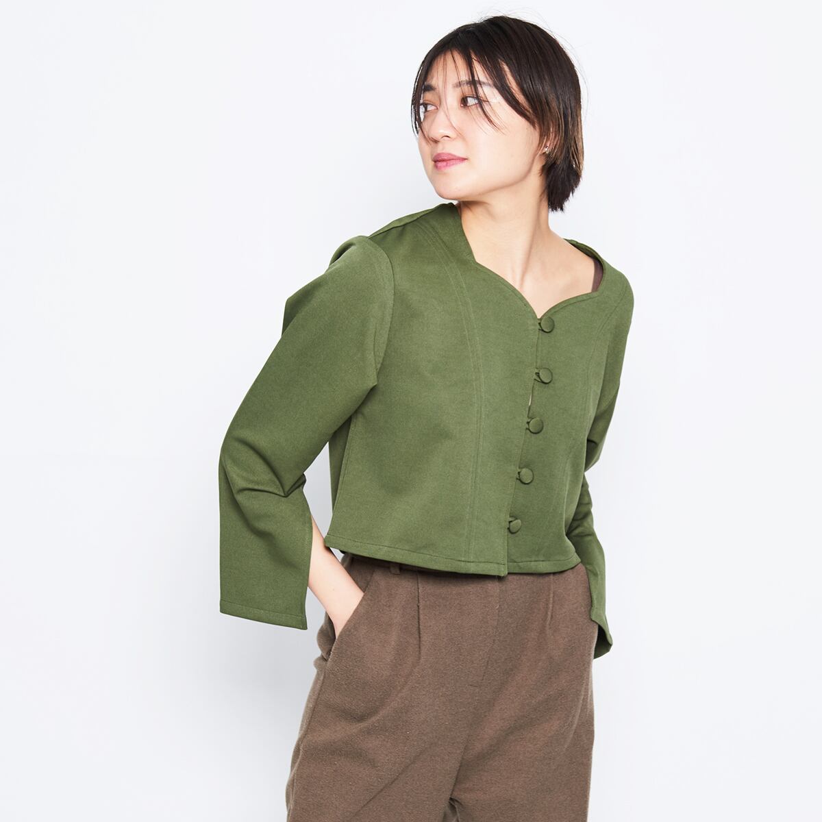 レディース ジャケット 羽織り アウター トップス 通勤 通学 プチプラ カーディガン ショート丈 クロップド丈 ハートネック おしゃれ 大人 上品