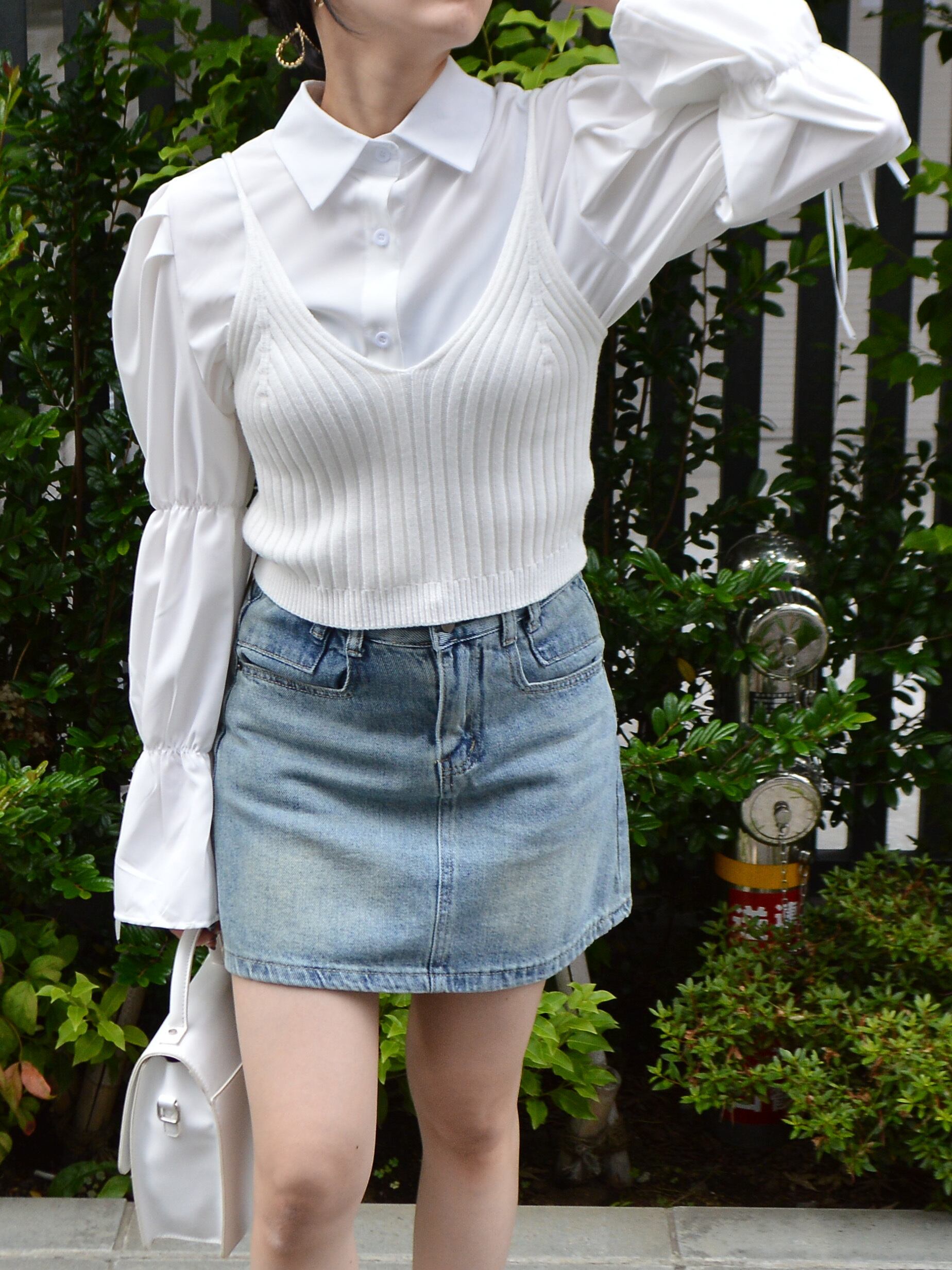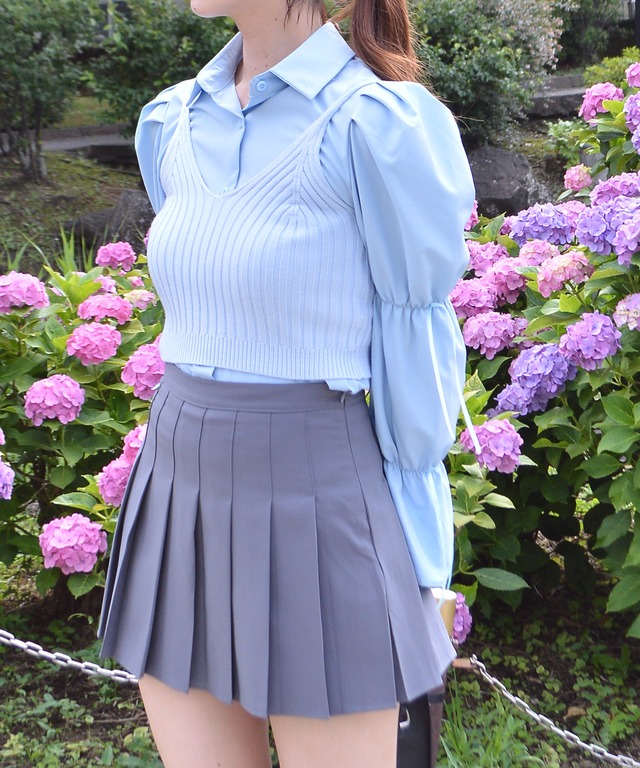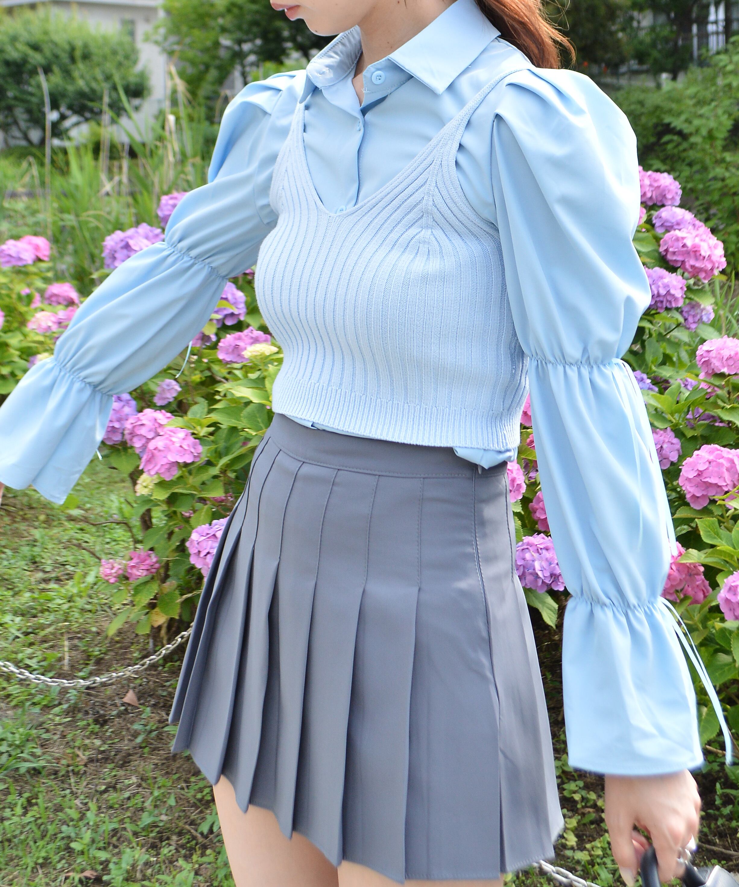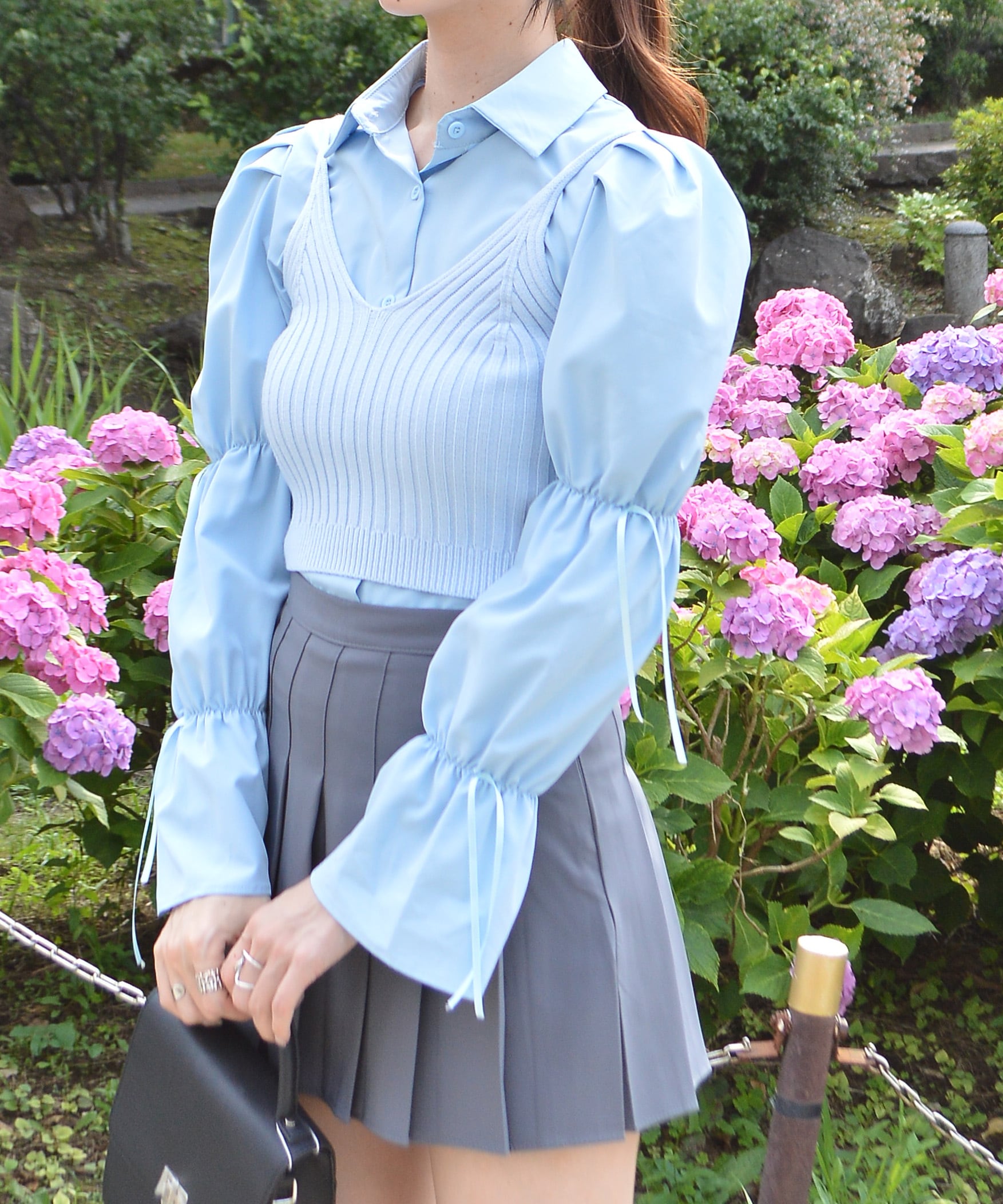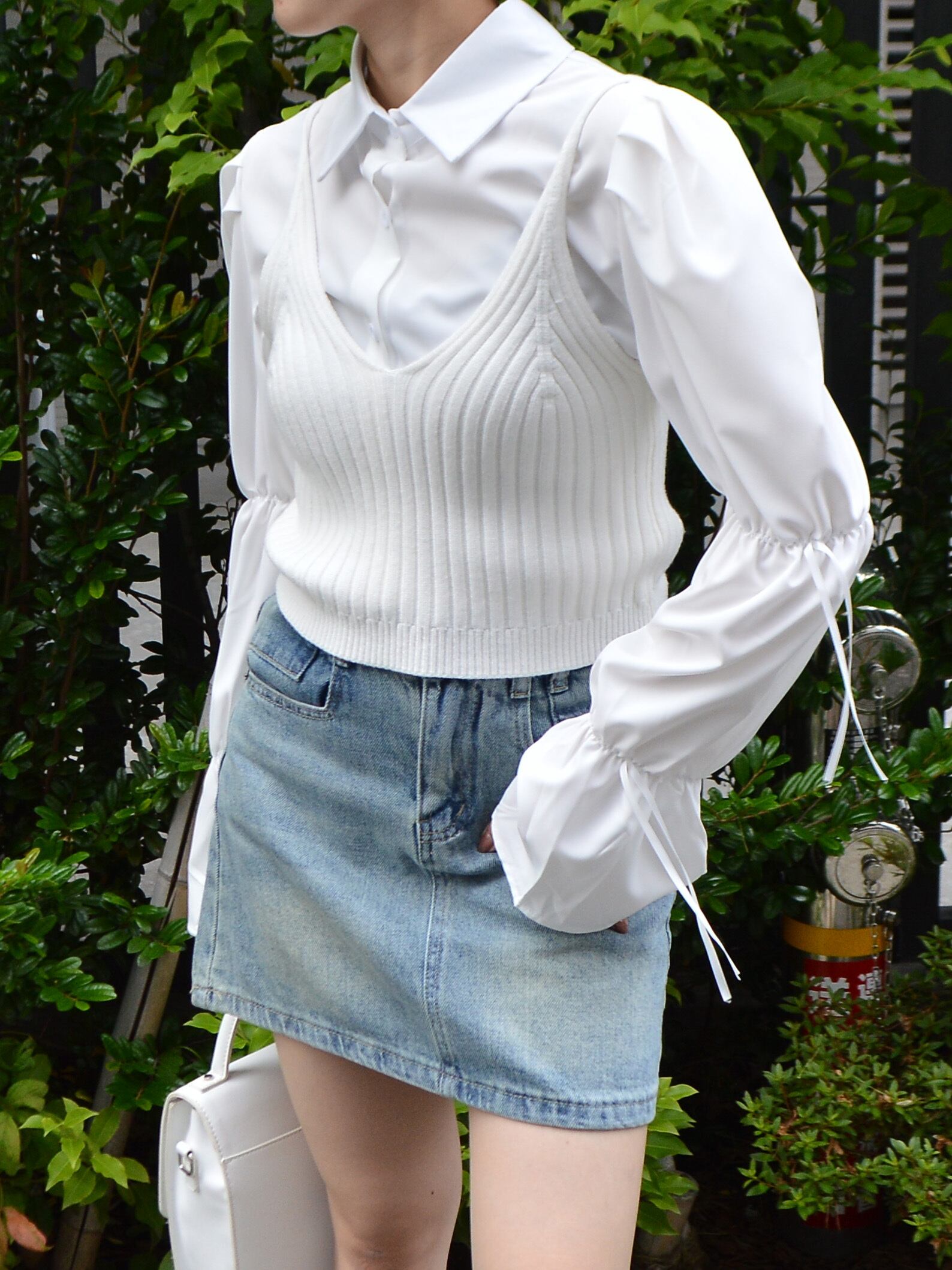 ・シャツとニットビスチェがセットになっていて別々でもお使いいただけます!